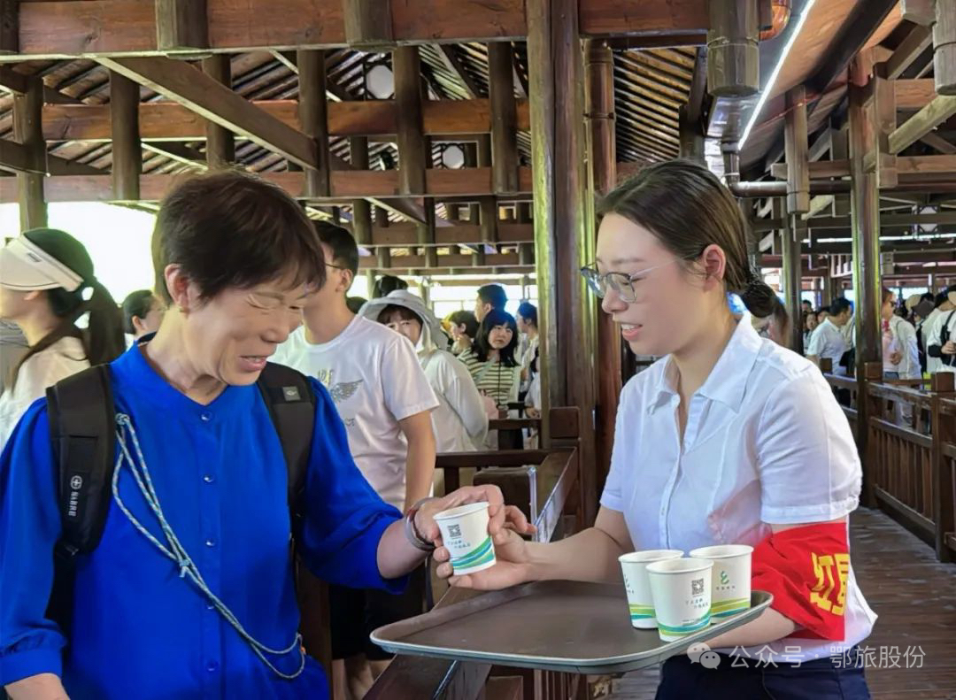 而在游客看不见的地方,100名志愿者早已就位,他们穿梭在景区的每个角落,为游客提供暖心服务。在38℃的高温天里,景区不仅免费提供酸梅汤,还在缆车站加装了雾森降温系统,这份细致入微的关怀,让来自重庆的王女士直呼"太贴心了"。