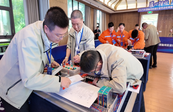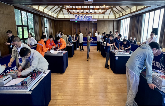 10点10分,紧张激烈的电气实操现场,8张赛台同步启动,选手在45分钟内完成线路连接、故障排除、电路改进。现场分工有序,有人规范布线,有人5分钟定位“停车电路接触不良”故障,“故障类型指示灯”的创新实用设计获专家当场点赞,细节之处尽显匠心。