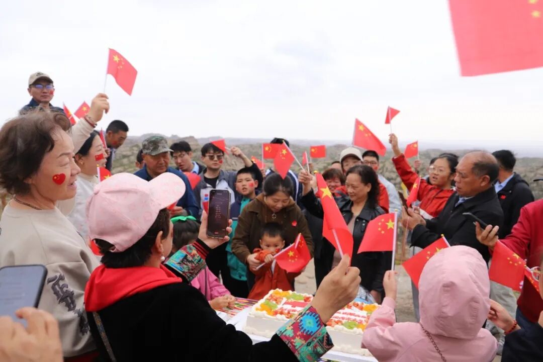 新疆怪石峪景区举办的"我在祖国最西北为祖国庆生"登山活动吸引众多游客参与。