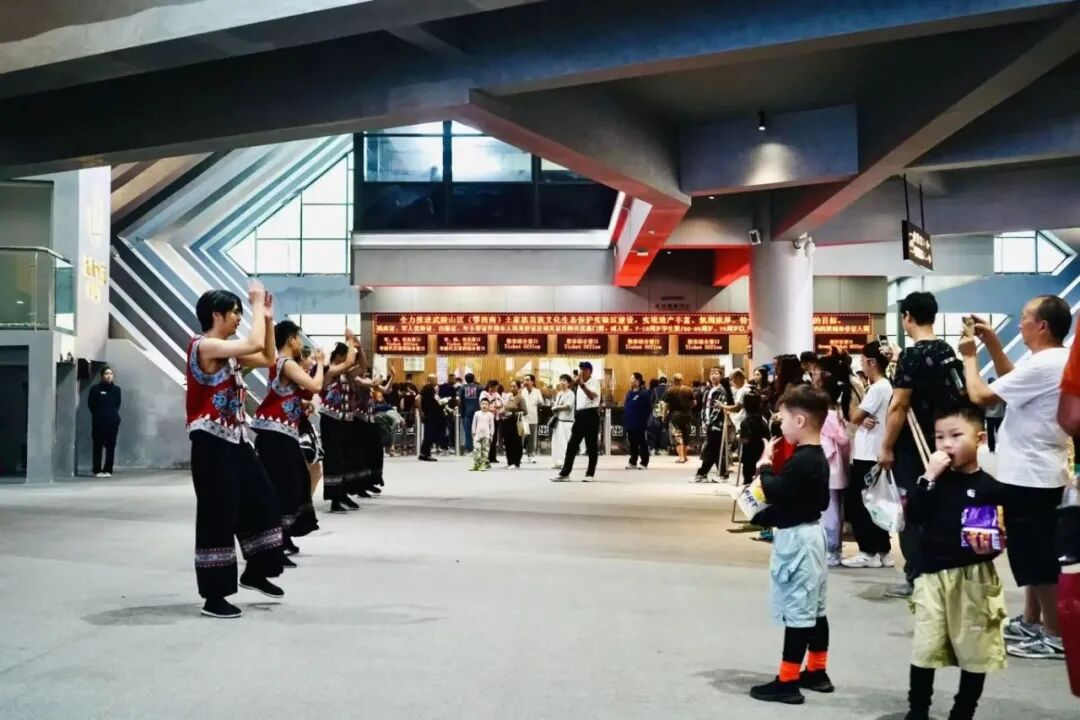 当游客们怀着暖意继续前行,在游客中心大厅和索道广场、地面缆车候车处,另一份惊喜已悄然等候。伴随着轻快的节奏,演艺人员翩翩起舞,灵动的表演不仅让排队等候的时光变得轻松愉快,更让整段旅途洋溢着欢声笑语。