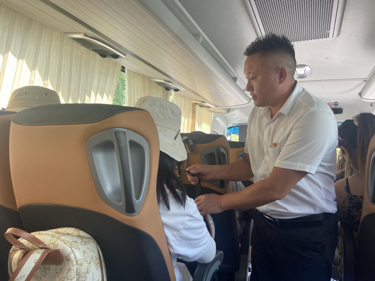 大峡谷景交转运线早已深深地烙在刘列宁的脑海,他深知每一趟景交车都牵动着游客的出行体验,双节游客量攀升,每天清晨,他便和师傅们逐一检查车辆刹车、油量、空调等关键部位,结合实时客流灵活调整发车班次,确保游客“少等待、快通行”,遇到行动不便的游客,他总会主动上前搭把手,面对游客的各种咨询和疑问,他总能微笑讲解,让游客旅途更添暖意,成为最受游客欢迎的“贴心人”。