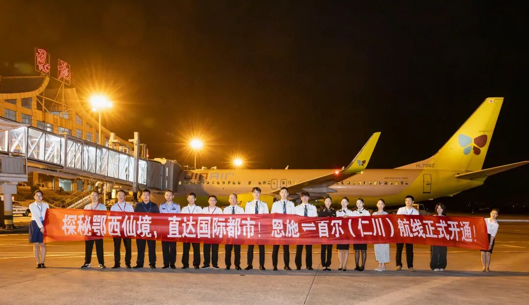 9月8日凌晨,韩国真航空LJ885航班平稳降落在恩施许家坪国际机场,标志着恩施⇄首尔(仁川)国际航线正式通航。这条“空中桥梁”的搭建,不仅缩短了两地时空距离,更恰逢恩施金秋旅游旺季,为中外游客开启了便捷的山水探秘之旅。