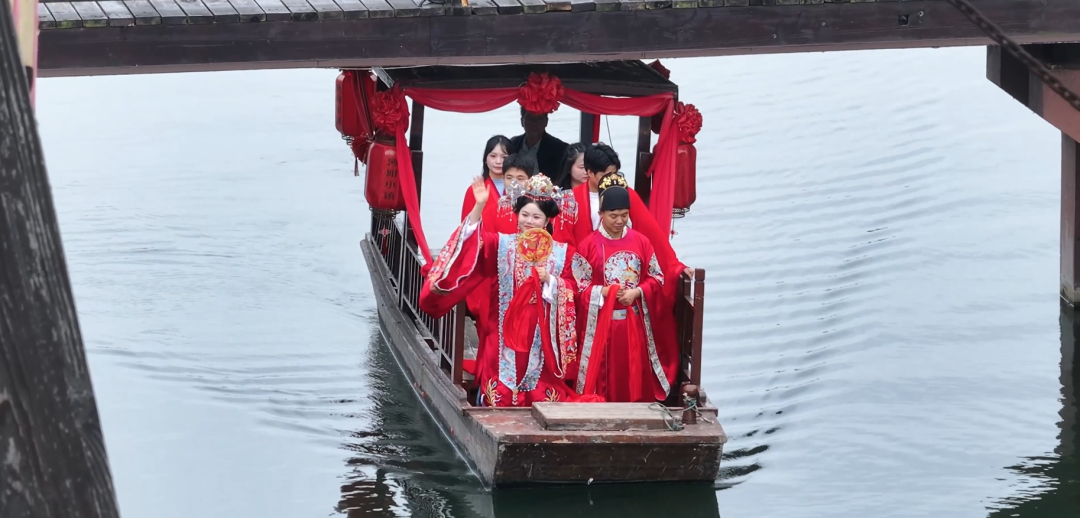 据悉,国庆期间沔阳小镇推出的中式水上婚礼系列产品,通过场景创新与礼仪复原,正吸引越来越多年轻群体关注传统婚俗文化。此次婚典作为先例,不仅为景区带来新业态,更让游客在沉浸式体验中感受到中华礼仪文明的永恒魅力。