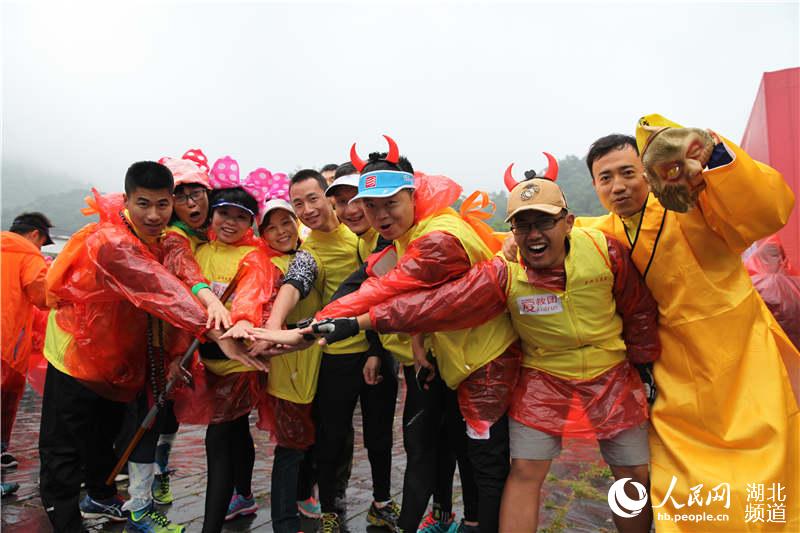 人民网武汉5月9日电 (董行)8日,湖北首届禅修马拉松在随州大洪山风景区开跑,千名跑友冒着绵绵春雨,沿着蜿蜒的山间公路一路登顶大慈恩寺。