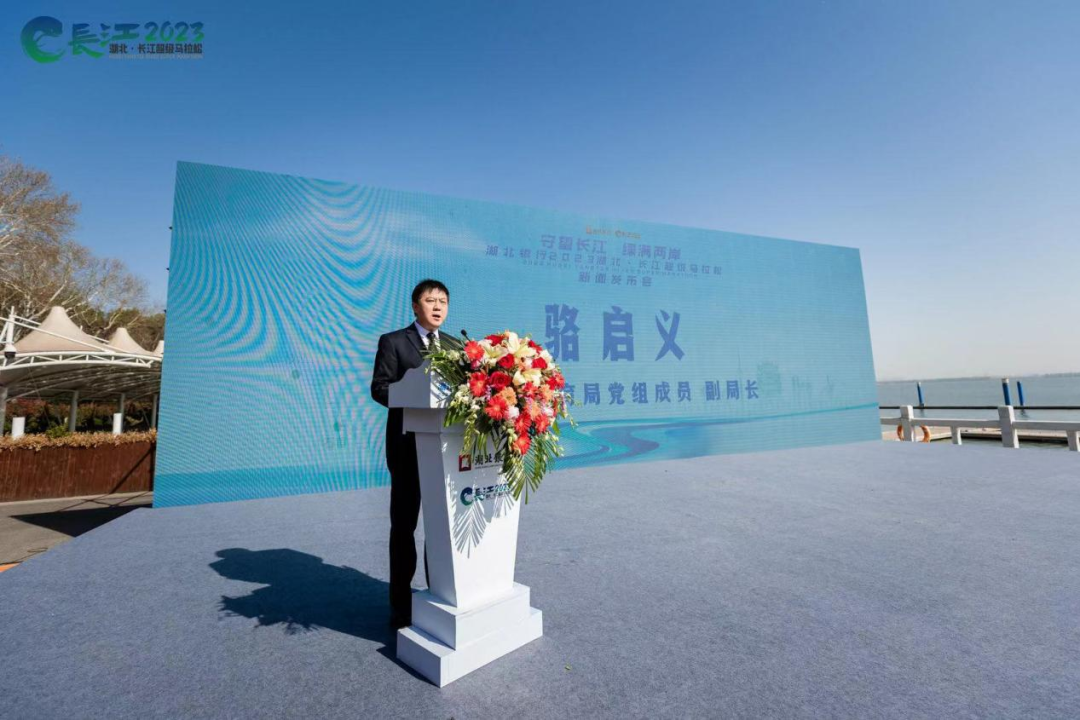 新闻发布会上,湖北省体育局党组成员、副局长骆启义上台致辞,他表示,举办湖北·长江超级马拉松是贯彻落实党的二十大精神和省第十二次党代会精神的生动实践,是积极践行习近平生态文明思想,奋力谱写长江大保护新篇章的体育探索;对普及全民健身、缔造幸福生活、助力湖北建设全国构建新发展格局先行区意义重大。