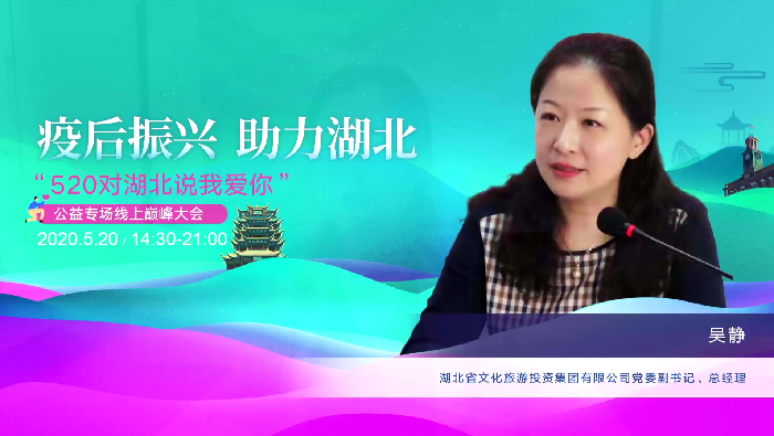 5月20日,集团党委书记副书记、总经理吴静在“520对湖北说我爱你”湖北文旅振兴公益线上巅峰大会上作题为《变中求进再出发 为湖北文旅振兴贡献硬核力量》的演讲,该活动由省文旅厅指导,中国旅游研究院、全国工商联旅游业商会支持,活动吸引了近21万人在线观看。