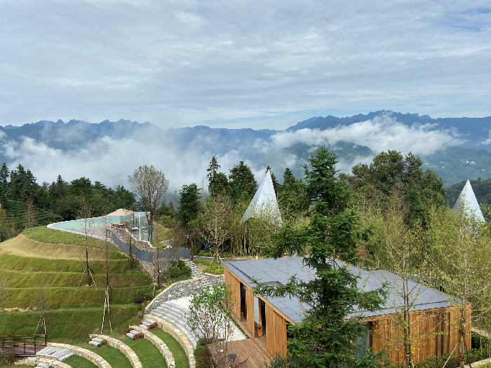 随后记者来到茶旅小镇中的千山云舍酒店,记者看到处于山中的酒店不仅有会客厅、户外大地厨房、无边泳池、草坪叠浪剧场、微型生态停车场等配套设施,酒店房间内部还配有一系列智能家居系统。据负责人介绍,首开区以18栋度假木屋为载体的千山云舍网红酒店在2020年8月建成并投入运营,开业以来整体入住率达到89%。