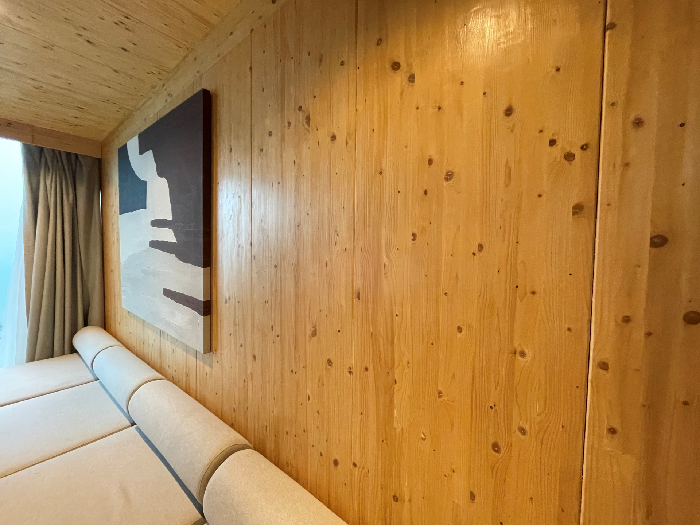 △据悉,木屋墙体全部采用松树实木,夏天能闻到阵阵松香