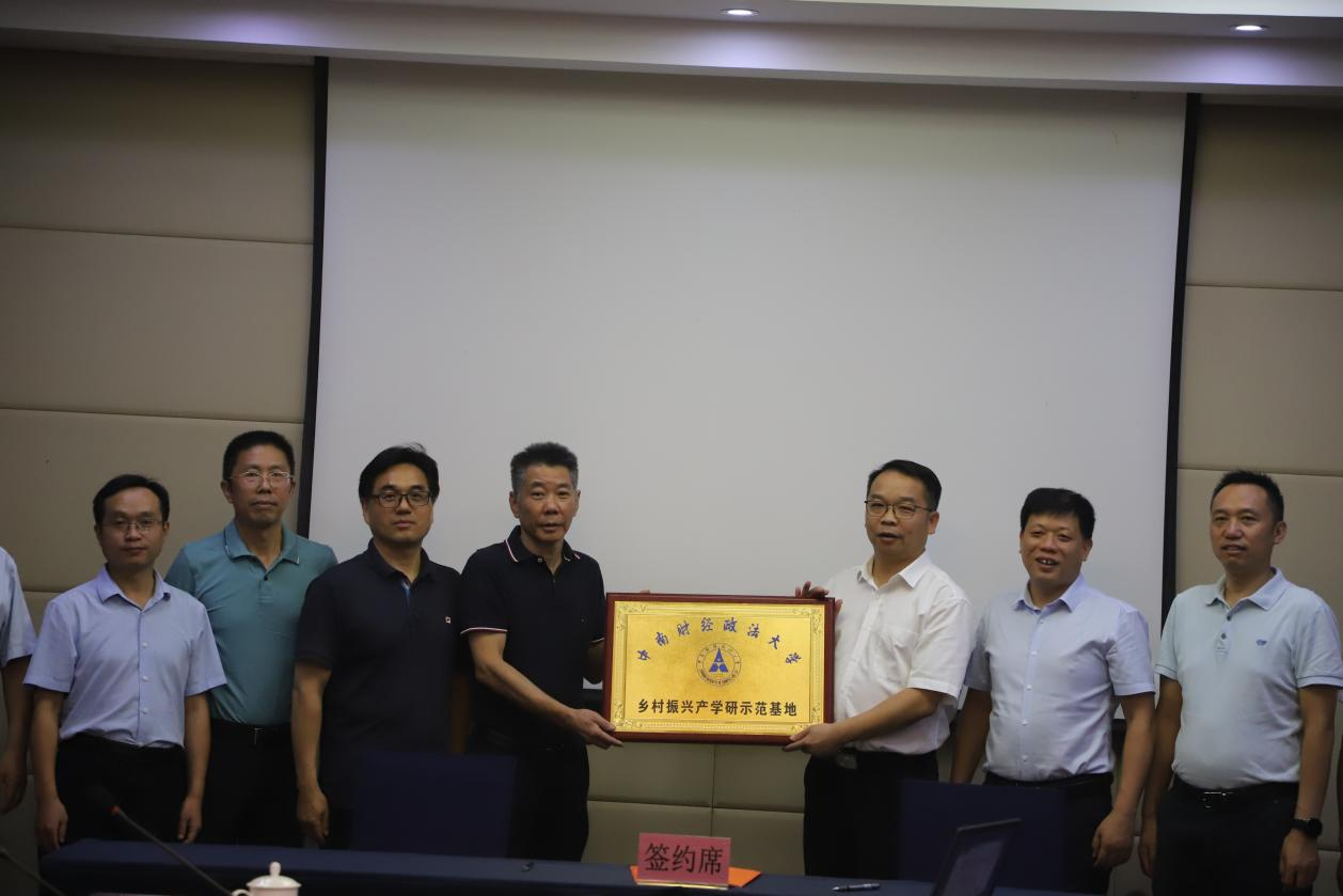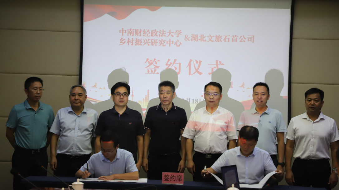 9月18日,湖北文旅石首公司与中南财经政法大学举行签约揭牌仪式。中南财经政法大学乡村振兴研究中心主任陈池波教授和石首公司董事长王梦力共同为“乡村振兴产学研基地”揭牌,中南财经政法大学工商管理学院副院长吴海涛教授和石首公司总经理巩敏代表双方签署战略合作协议,并召开校企深度合作座谈会,省水利厅二级巡视员邵远亮参加活动。