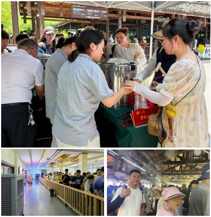 致力塑造有温度的服务品牌。在提升服务品质的同时,鄂旅股份还注重有温度的服务氛围。炎热的夏天在地面缆车、索道广场排队处增设雾森降温系统,设立清凉站,免费供应酸梅汤、饮用水等消暑饮品,为烈日下的游客及时补充水分,送去峡谷间的凉意。此外,组建了“红星服务队”,在客流高峰时段增援一线岗位,协助引导、咨询、发放清凉饮品等工作,赢得了游客的广泛赞誉。