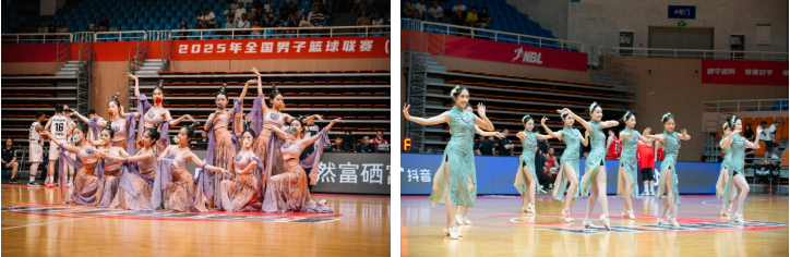 湖北文旅男篮致力于丰富主场元素,提质升级观赛体验。8月2日至14日,武汉主场“国风篮球专场”惊艳登场,以“国风之夜”活动为载体,打造文体娱深度融合的观赛盛宴,成为赛事期间的瞩目亮点。身着敦煌飞天古装与典雅旗袍的啦啦队舞动登场,国风爵士舞巧妙融合传统韵律与现代节奏,精彩表演瞬间点燃观众热情。