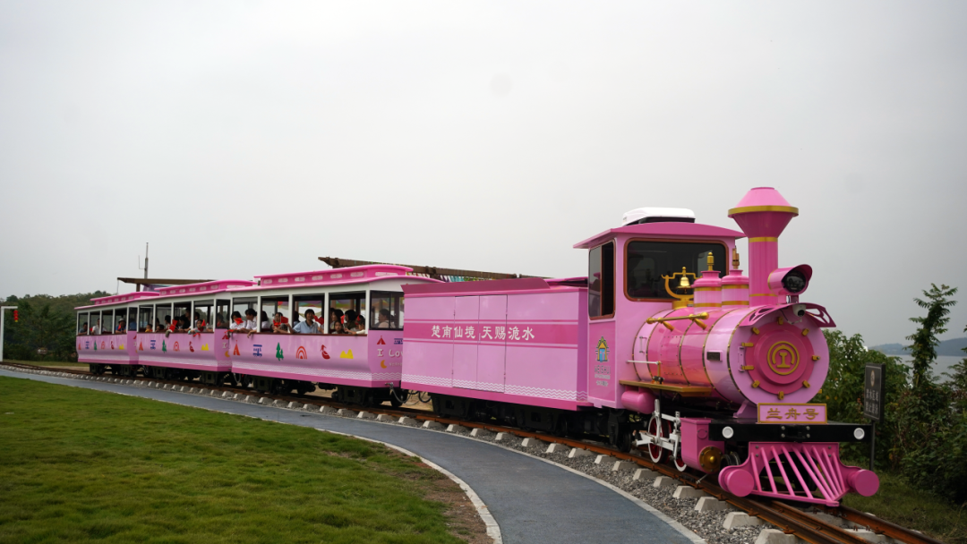 兰舟岛上,土家《摆手舞》以热情奔放的舞姿展现民族风情,松滋民歌用悠扬婉转的旋律传递乡土情怀,精神抖擞的队列表演与飘扬的五星红旗相映生辉,这场融合了民俗风情与崇高敬意的文化体验,让在场游客深受感染。假期重磅推出的新项目——童话小火车,更是成为亲子家庭的首日“打卡”焦点,这列穿梭于湖光山色间的“亲子专列”,成为了今日最受欢迎的温馨体验。