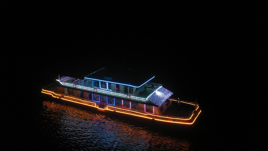 在百岛画廊,备受期待的洈水夜游项目在国庆之夜成功首航。泛舟夜色洈水之上,在习习晚风中欣赏与白日迥异的湖光夜色,感受别样浪漫。水上K歌的独特体验更成为夜游亮点,为静谧山水增添了无限生机与活力,深受游客青睐。