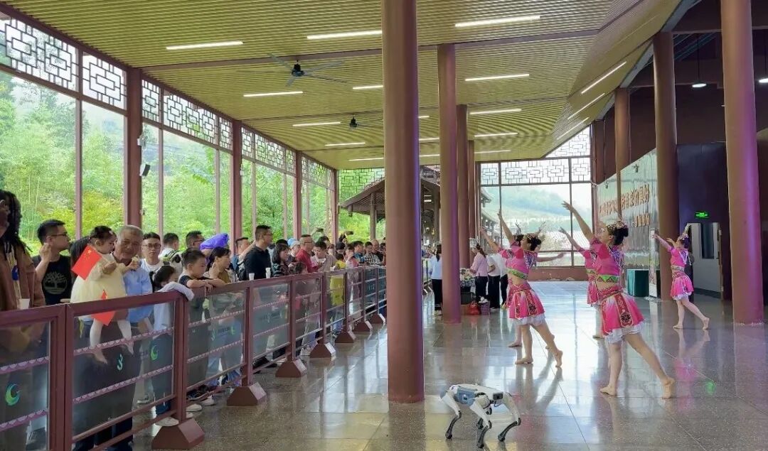 当游客们怀着暖意继续前行,在游客中心大厅和索道广场、地面缆车候车处,另一份惊喜已悄然等候。伴随着轻快的节奏,演艺人员翩翩起舞,灵动的表演不仅让排队等候的时光变得轻松愉快,更让整段旅途洋溢着欢声笑语。