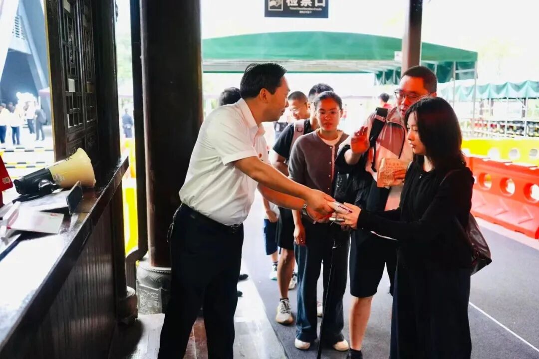 与此同时,各志愿服务点同步推进文明旅游宣传,通过发放宣传资料与趣味知识问答相结合的方式,将文明旅游规范转化为“答对有礼”的互动体验,催生了“文明打卡”的新风尚。当日共计发放文明旅游宣传手册530余份,吸引了320余名游客积极参与。
