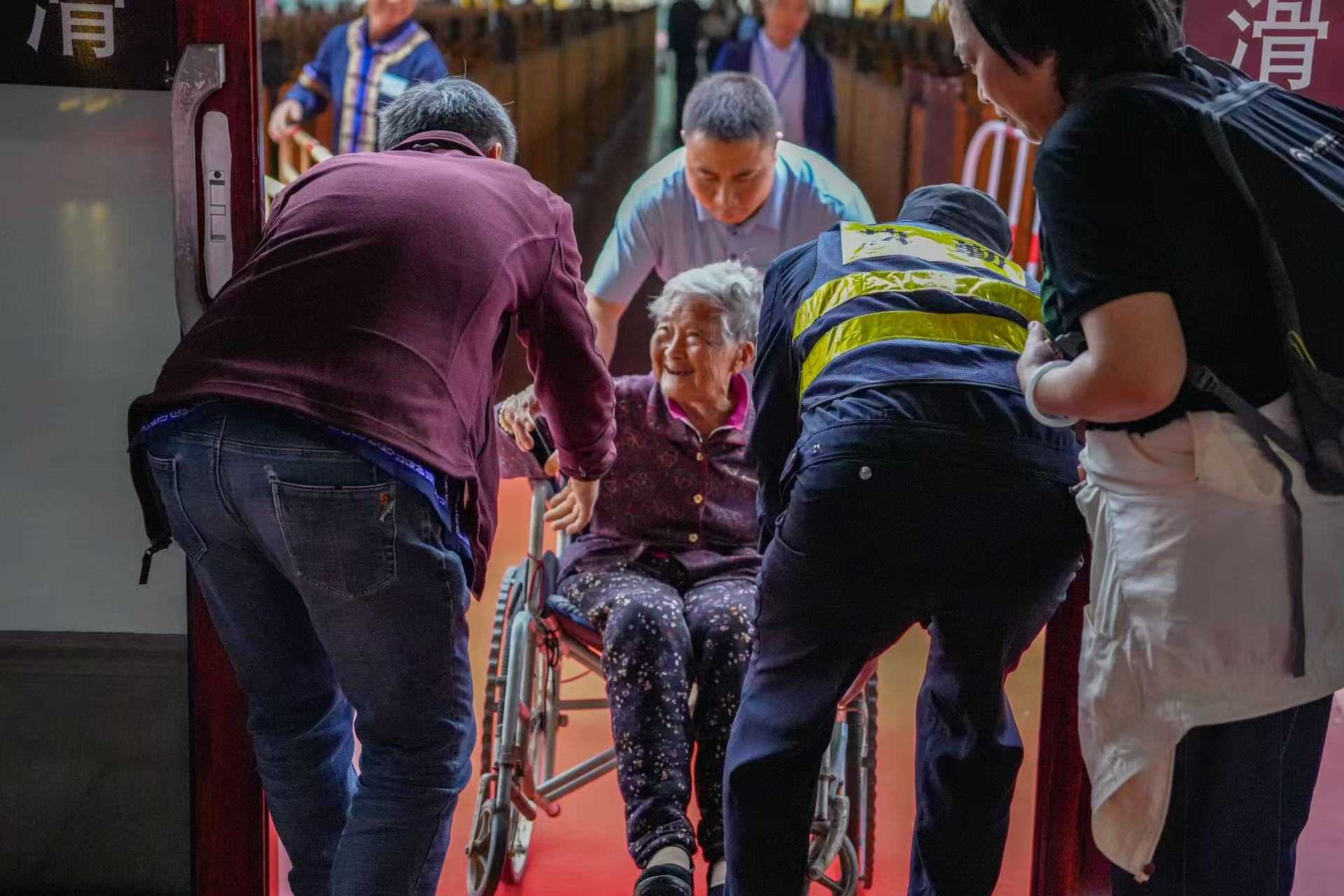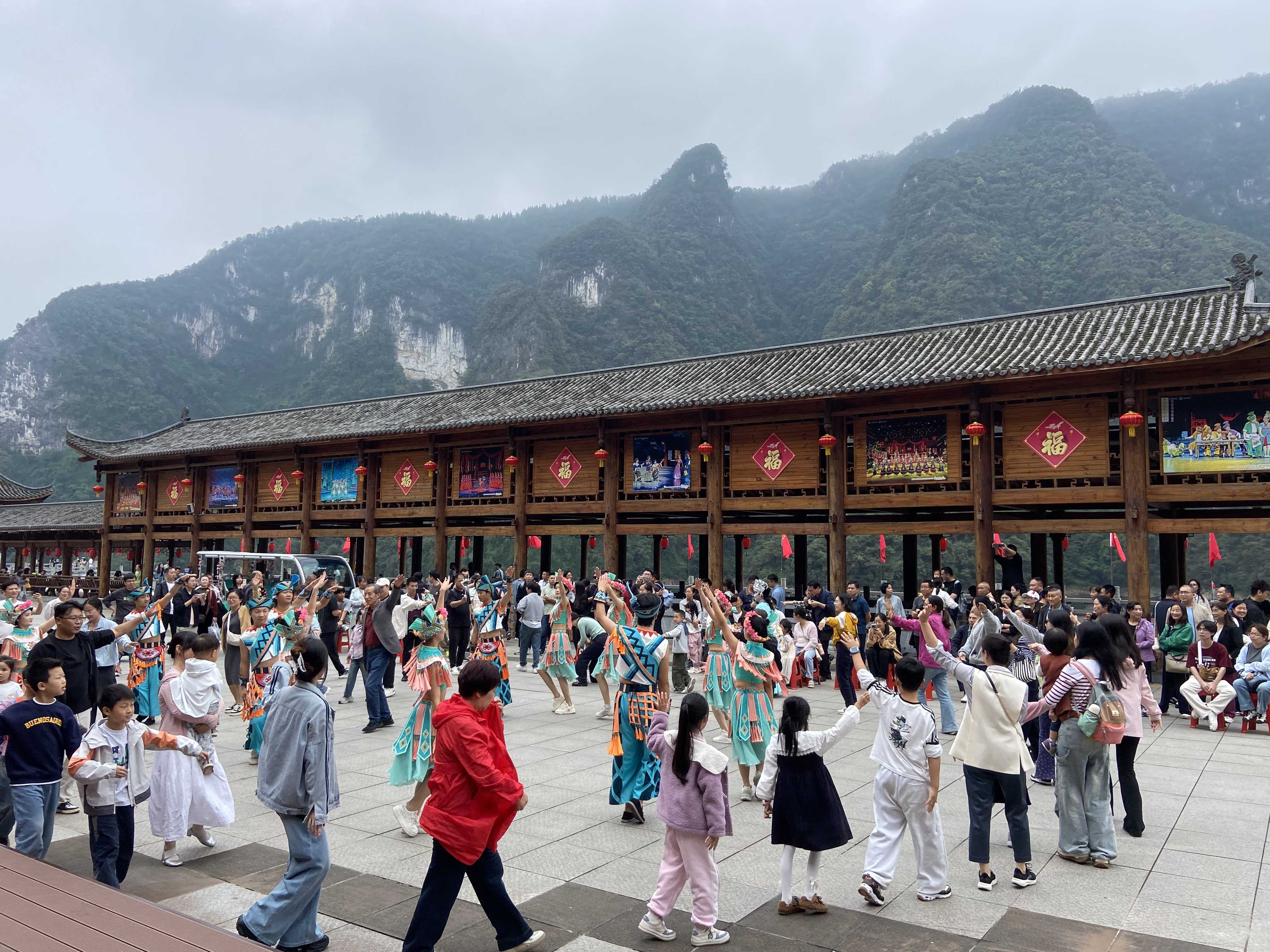 节日期间,清江画廊将“宠客服务”融入每一个细节。在主要通道及热门景点,增设了“暖心服务岗”“散点式演艺”,不仅提供问询、指引、简易医疗救助等服务,还免费供应应急物品。针对老年、幼童、残障等特殊群体,景区开辟了绿色通道,并提供轮椅、婴儿车租赁及无障碍游览路线建议等人性化服务。一幕幕温情的画面不断上演:工作人员背着老人上下台阶,帮助与家人走散的孩子找到父母,为身体不适的游客提供临时休息点并联系医护……这些看似平凡的举动,汇聚成一股暖流,温暖着每一位游客的心。