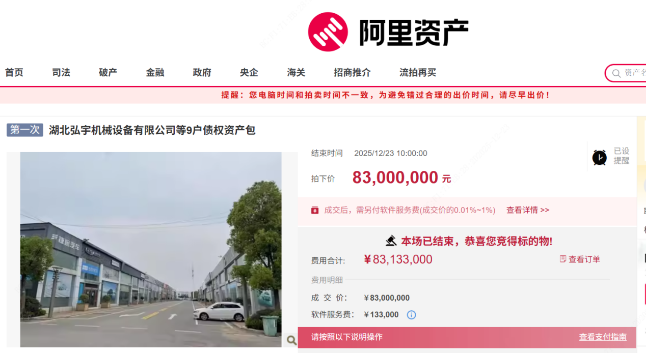 近日,文旅资管公司旗下子公司以8300万元总价成功竞得湖北弘宇机械设备有限公司等9户不良债权资产包。该资产包由中国中信金融资产管理股份有限公司湖北省分公司持有,底层资产集中于襄阳地区,是2025年度襄阳地区成交规模最大的不良资产包。