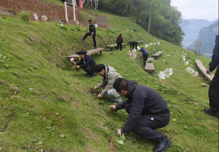 消防演练结束后,大清江党支部立即启动春季营地环境整治行动,充分发挥党员先锋模范作用,以党建品牌创建助力服务提质。党员干部带头示范,全体员工积极参与,分工协作对营地杂草、枯枝落叶、生活垃圾进行全面清理,精细化整治公共区域,打造整洁有序、舒适宜人的营地休闲环境,为景区团建活动开展、优化游客体验打下坚实基础。