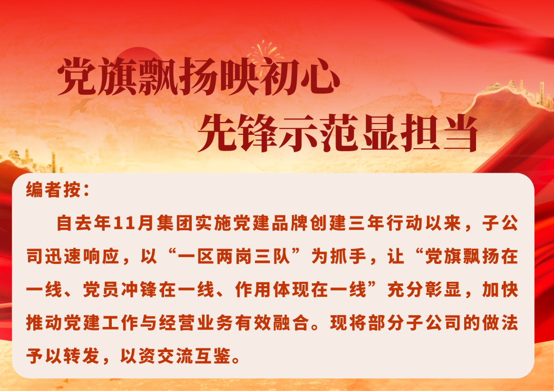 当前,"一区两岗三队"创建活动已成为推动党建与业务融合的有效载体。下一步,集团将持续深化党建品牌建设,在重点领域打造示范标杆,完善长效机制,切实将党建优势转化为发展优势,以高质量党建助推集团高质量发展。