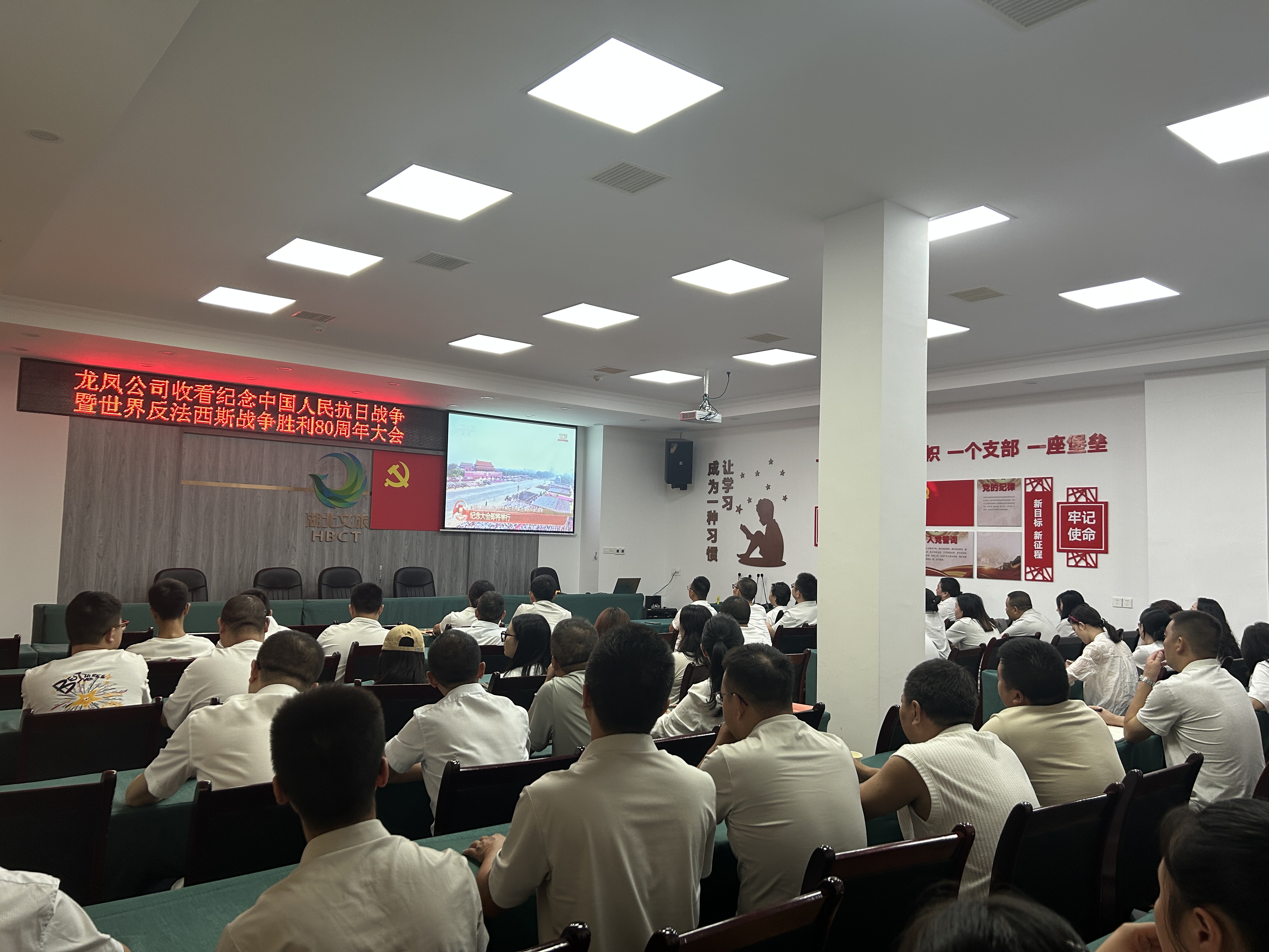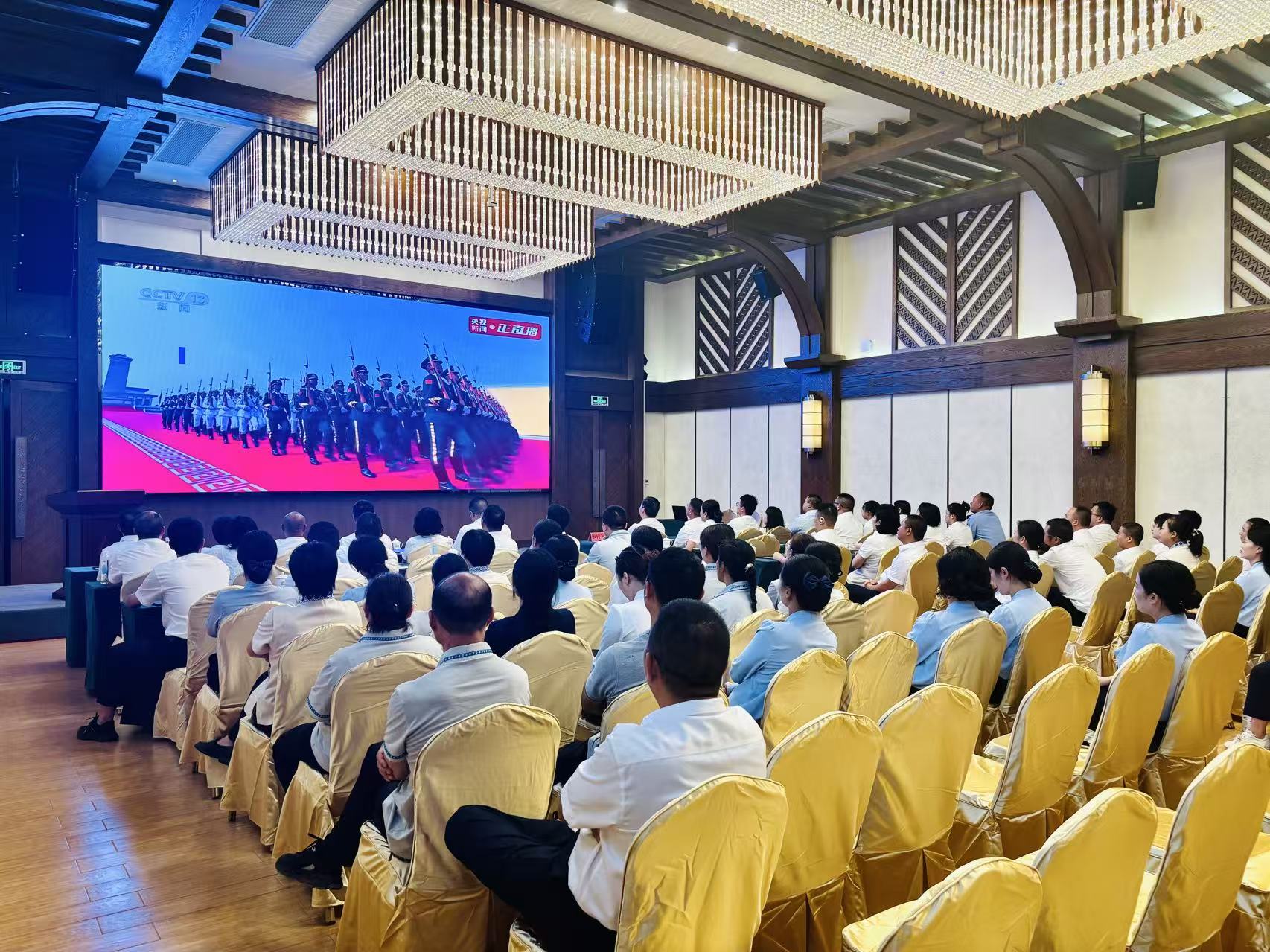 9月3日上午,纪念中国人民抗日战争暨世界反法西斯战争胜利80周年大会在北京天安门广场隆重举行。恩旅集团组织广大党员干部职工通过电视、网络等多种形式集中收听收看大会盛况,共同铭记历史、缅怀先烈、珍爱和平、开创未来。