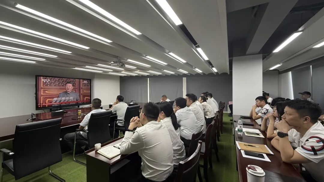 9月3日上午,体育集团组织全体干部职工在大会议室集中观看纪念中国人民抗日战争暨世界反法西斯战争胜利80周年大会。