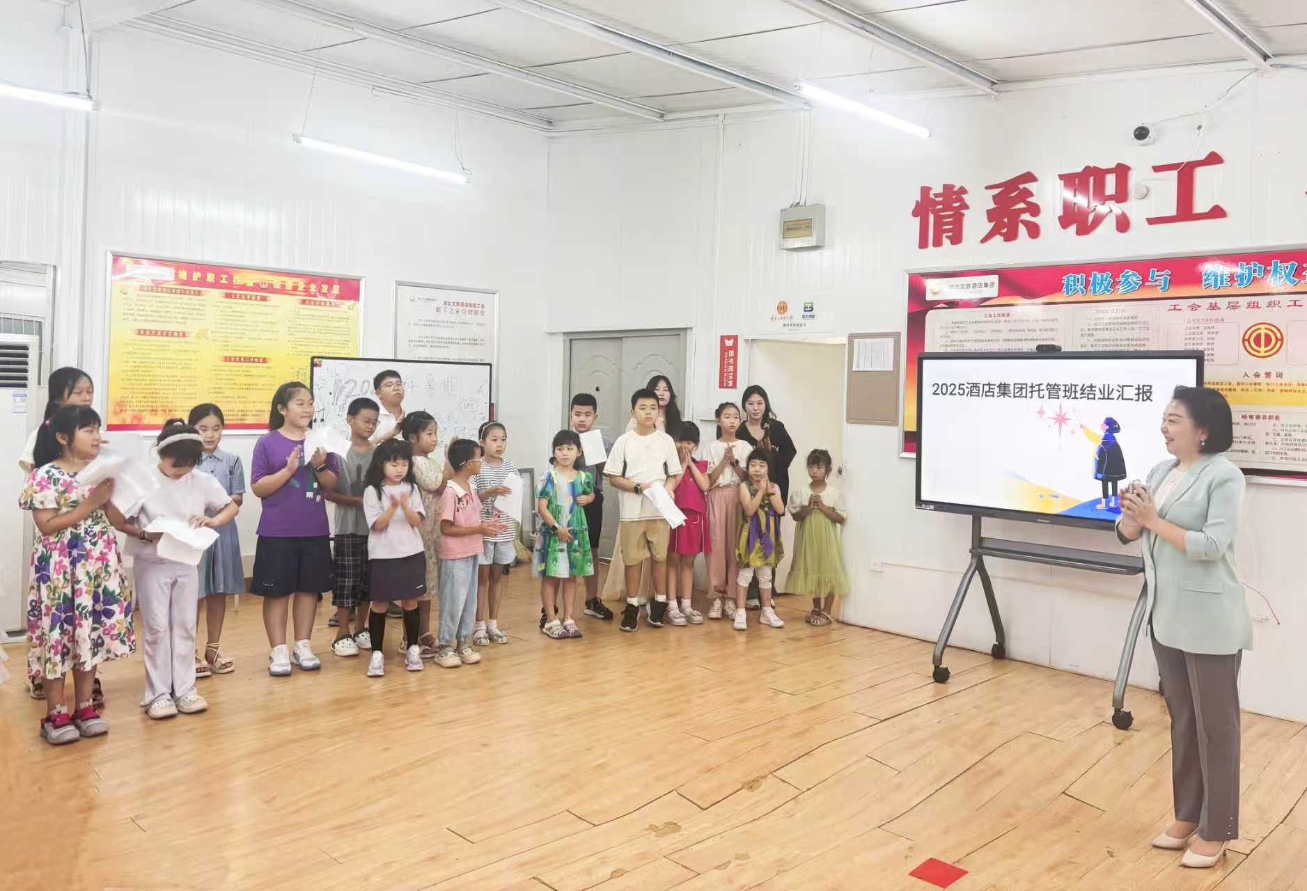 2025年暑期,酒店集团精心组织职工子女托管班,配备专业师资,为50余名职工子女提供安全、充实、有益的托管服务。课程设置涵盖学业辅导、文体艺术、英语口语等内容,并融合红色研学、非遗体验、手工烘焙等特色活动,让孩子们在学与乐中度过暑期,有效解决了职工子女“看管难”问题,获得广泛好评。