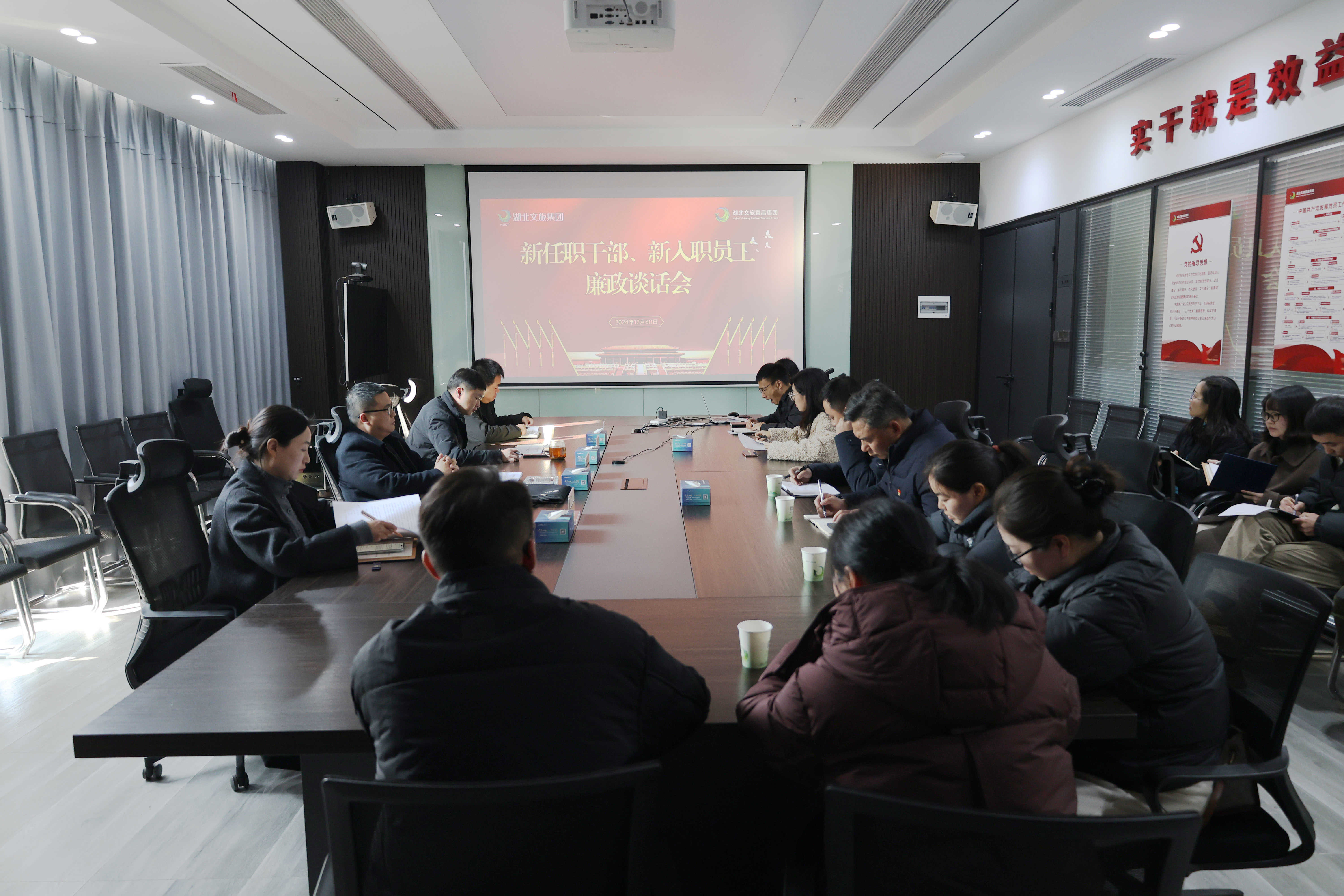 12月30日,为巩固深化党纪学习教育成果,加强年轻干部、关键岗位、新入职员工等重点岗位人员纪法培训、廉政提醒,宜昌集团召开新任职干部、新入职员工廉政谈话会。集团党委委员、纪委书记邓江权,党委组织部、纪检工作部、清江画廊公司综合办公室相关负责人以及新任职干部、新入职员工参加会议。