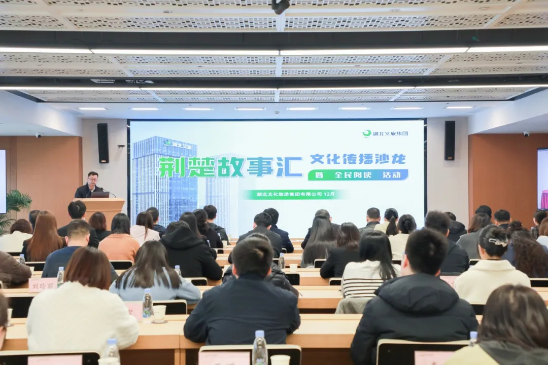活动中,集团宣读了《“悦读书·跃思考”全民阅读挑战赛活动方案》,举行了图书捐赠仪式。在分享交流环节,来自省旅游集团杨欢、荆旅集团周杰成与黄亢、襄阳集团刘婷四位同志分别围绕荆楚文化、长江生态、三国历史等主题作了生动分享;另有四位职工代表结合自身阅读书目,交流了读书心得与思考。
