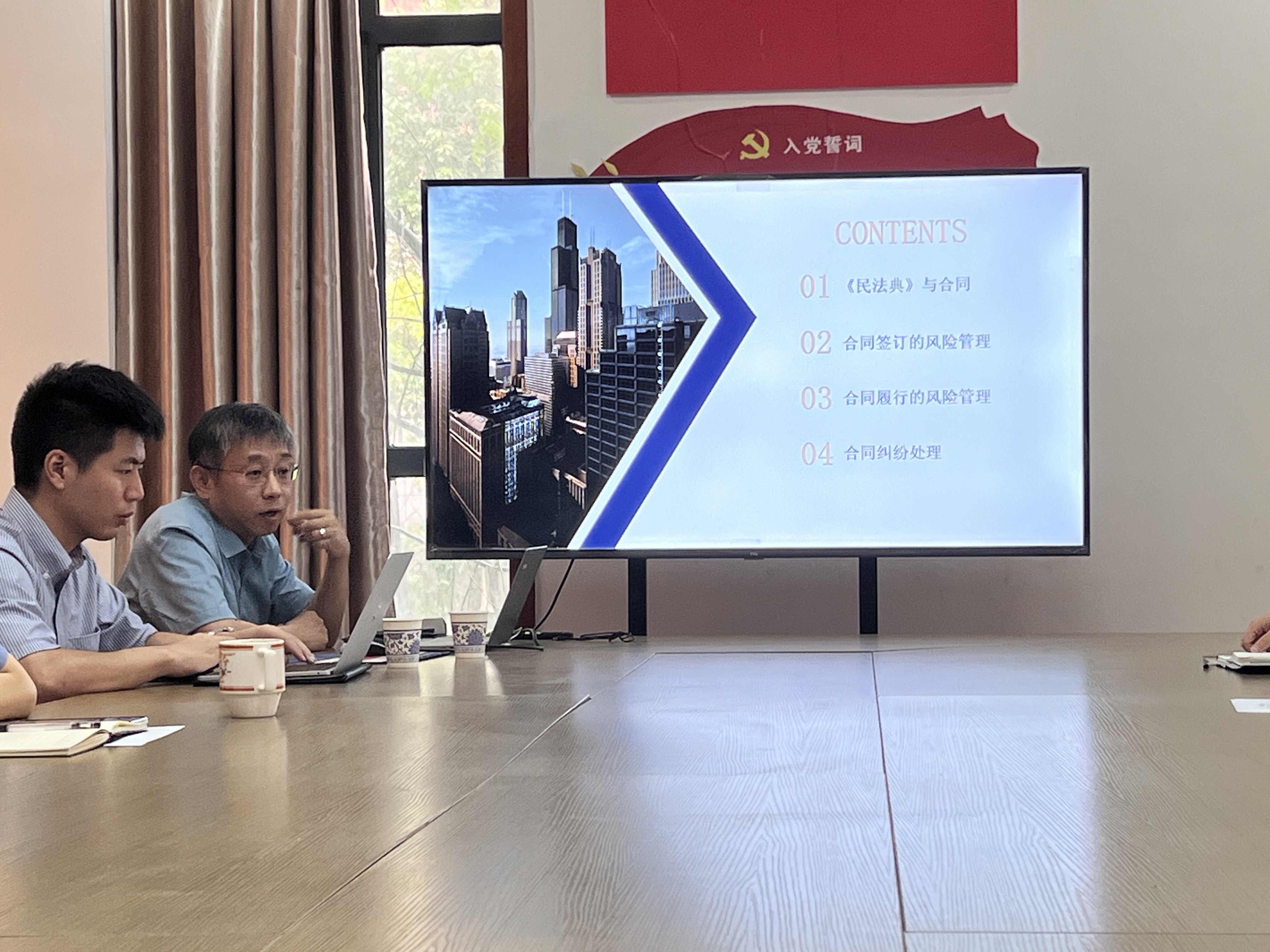 此次培训由常年法律顾问单位北京盈科(武汉)律师事务所李军律师及其团队进行现场授课。培训中,李军律师凭借丰富的国企办案经验,从合同签订前的风险管理、合同履行中的风险管理及合同纠纷处理等方面进行了细致讲解,并结合具体案例,深入剖析了合同管理过程中可能遇到的各种风险和挑战,并为企业合同全过程管理提出了针对性的意见和建议。