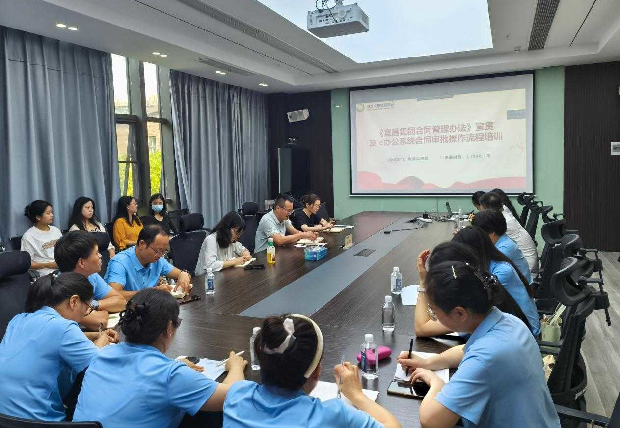 8月23日上午,宜昌集团财务风控部召开《合同管理办法》宣贯及e办公系统合同审批操作培训。宜昌集团总会计师周敏杰主持会议并发表讲话。宜昌集团各子公司综合办公室主任、财务负责人等40余人参加会议。