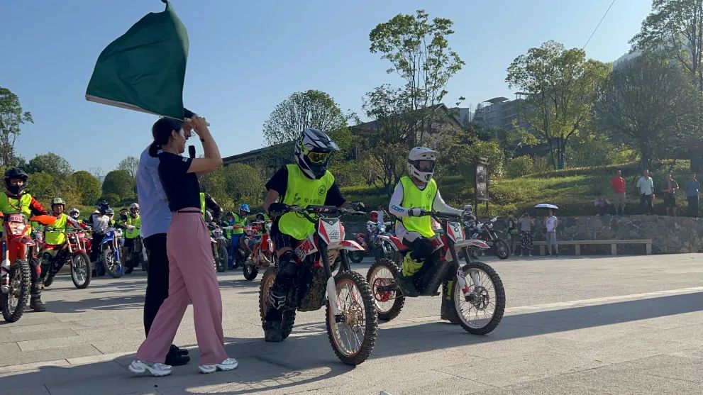 “我宣布,峡谷英雄摩托车越野林道耐力赛正式开赛!”恩施市文化和旅游局局长李国玲宣布开赛,随着发令枪响,一辆辆摩托车如脱缰野马奔腾而出,引擎的轰鸣声响彻峡谷。车手们身着专业装备,身姿矫健,在蜿蜒崎岖、充满挑战的林道上飞驰。现场游客朋友们被这紧张刺激的场面所吸引,喝彩欢呼共同感受摩托车运动带来的无限激情。