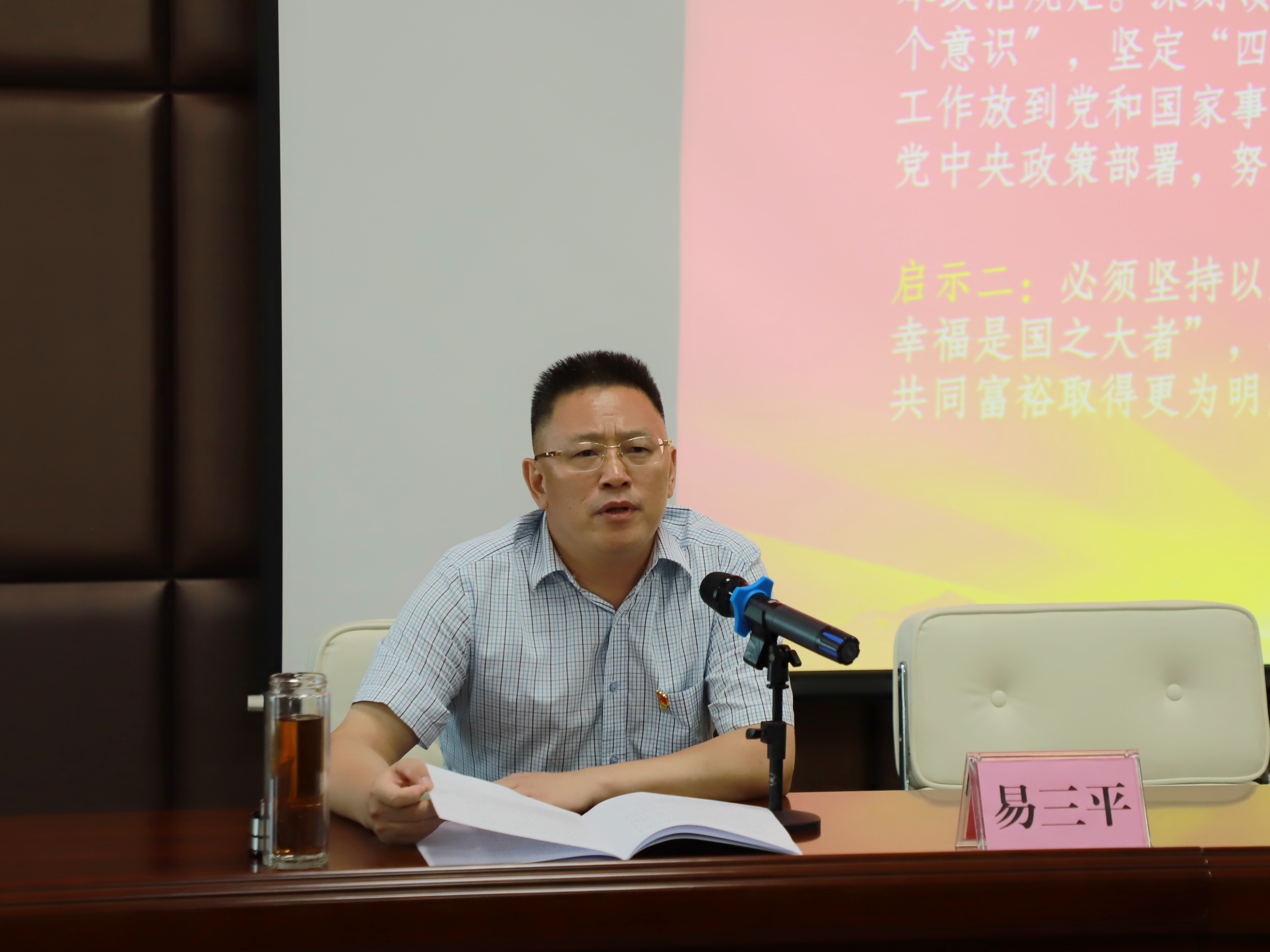 随后易三平以《再谈窑洞对——跳出历史周期率的第二个答案》为题,讲授党风廉政建设党课。