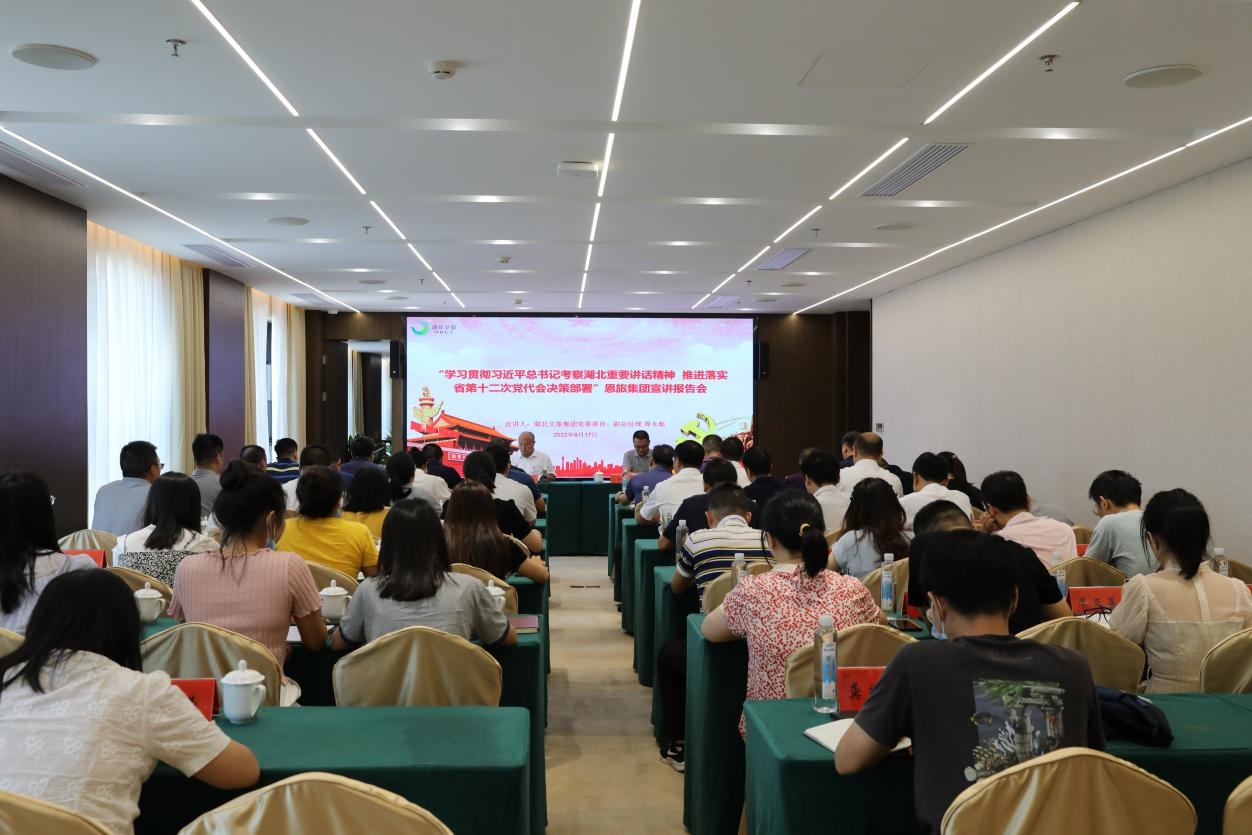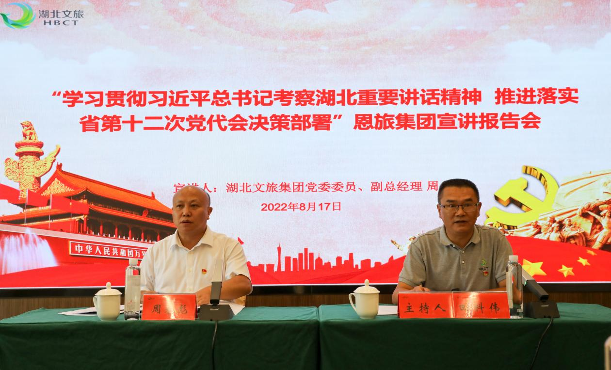 8月17日,免费黄色直播 党委委员、副总经理周永彪到恩旅集团开展“学习贯彻习近平总书记考察湖北重要讲话精神,推进落实省第十二次党代会决策部署”宣讲报告会。恩旅集团班子成员、机关全体人员,子公司班子成员参加宣讲报告会。报告会由恩旅集团党委副书记、总经理田科伟主持。