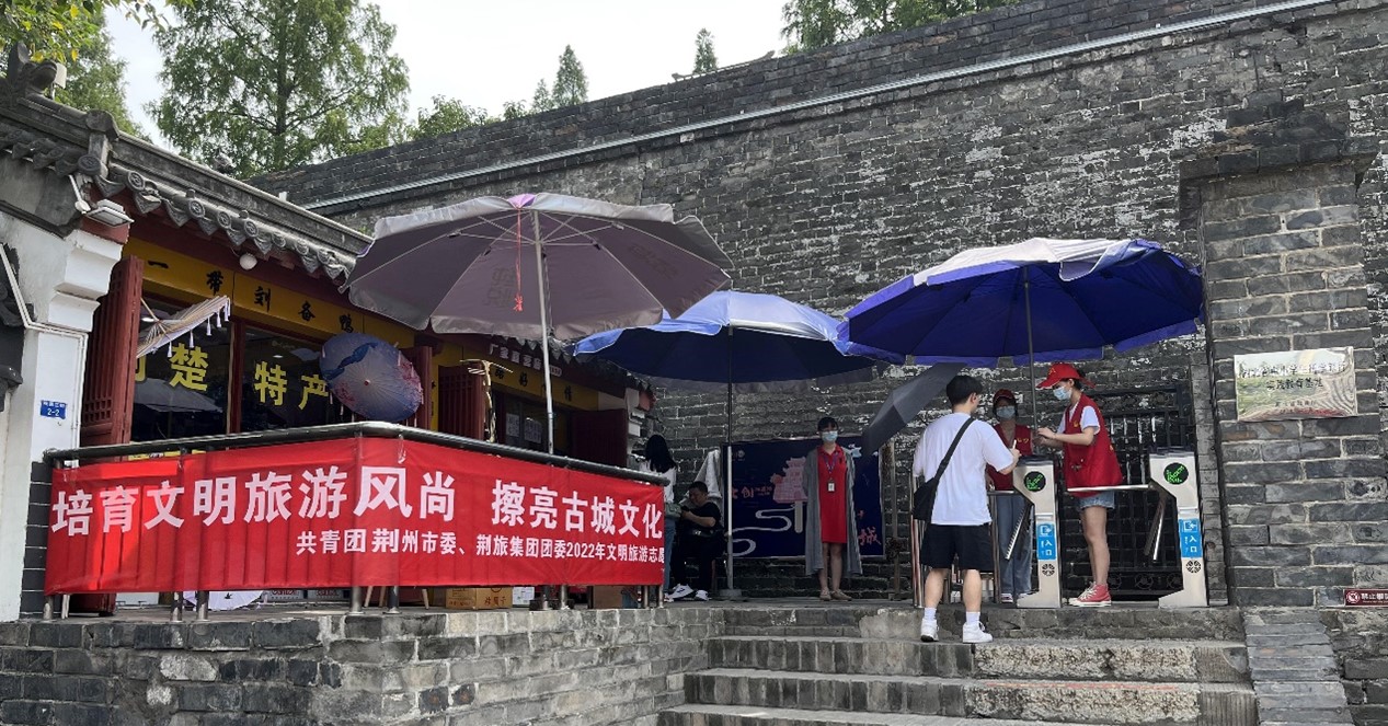 为体现志愿者服务精神,优化景区服务质量,共青团荆州市委、市青年志愿者行动指导中心和湖北文旅荆州集团团委联合开展了“培养文明旅游风尚,擦亮古城文化名片”青年志愿者服务活动。