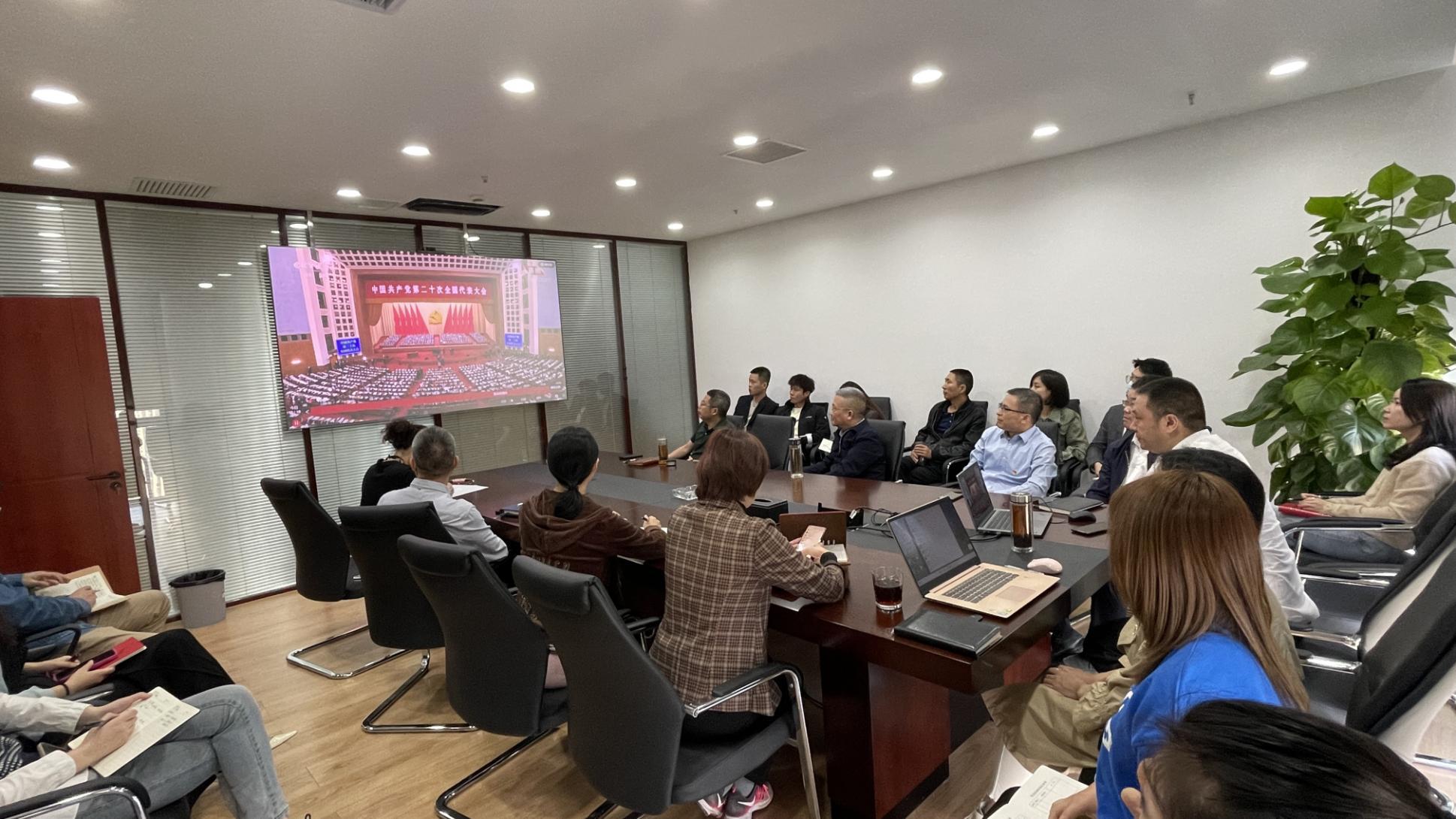 (湖北国贸集团本部党员干部职工集中观看党的二十大直播现场)
