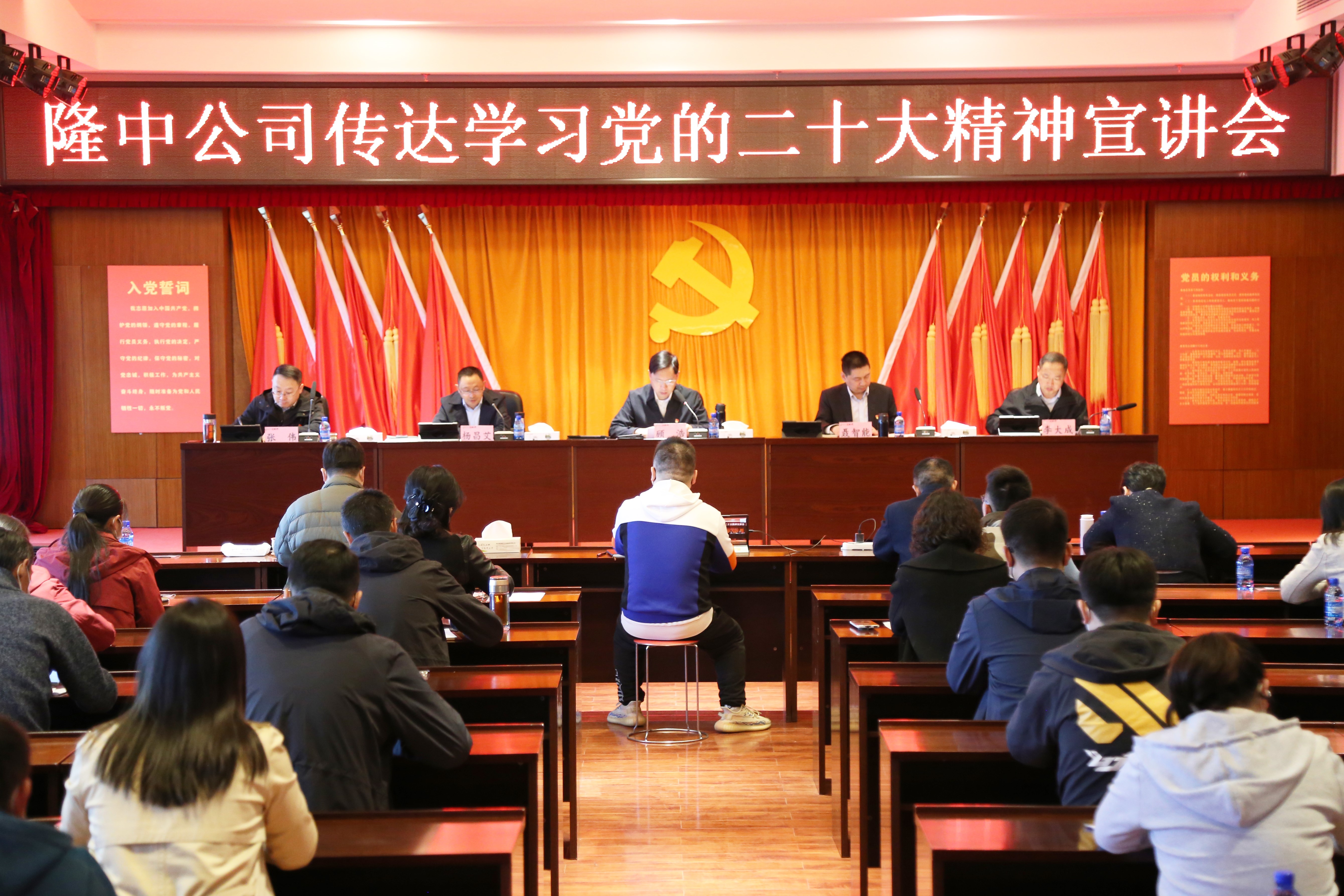 近日,隆中公司分4个会场集中召开全体员工会议,传达学习贯彻党的二十大精神,委书记、董事长顾浩作宣讲。
