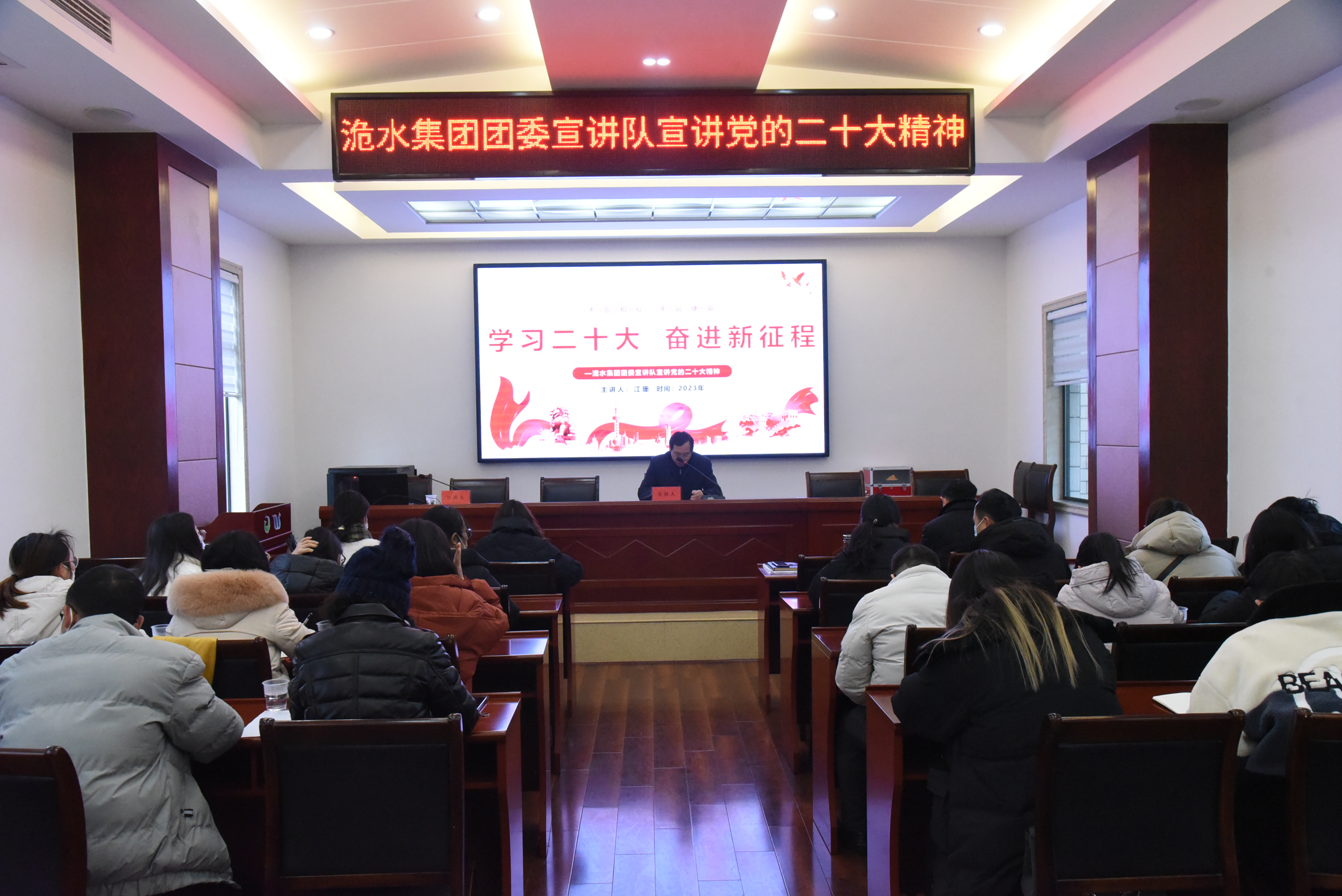 为进一步学习宣传贯彻党的二十大精神,营造浓厚的学习宣传氛围,1月17日上午,洈水集团团委组织开展党的二十大精神宣讲活动。集团党委书记、董事长廖光耀出席活动,党委委员、副总经理陈明红主持会议,春笋计划培训班班长江珊作主题宣讲。