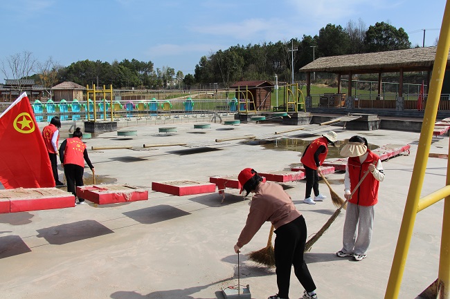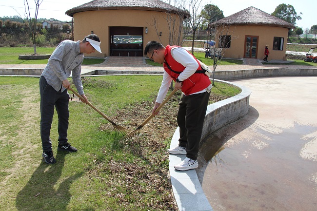 随后,45名党员和团员志愿者分两个小组清扫水上乐园区域及其它区域卫生。他们有的拾捡落在草地里烟头,有的清理丢在路边的纸巾等杂物,有的用扫帚和撮箕清扫游步道上的落叶,大家不怕脏、不怕累,个个干得热火朝天,为游客营造了一个干净、整洁、健康的景区环境。