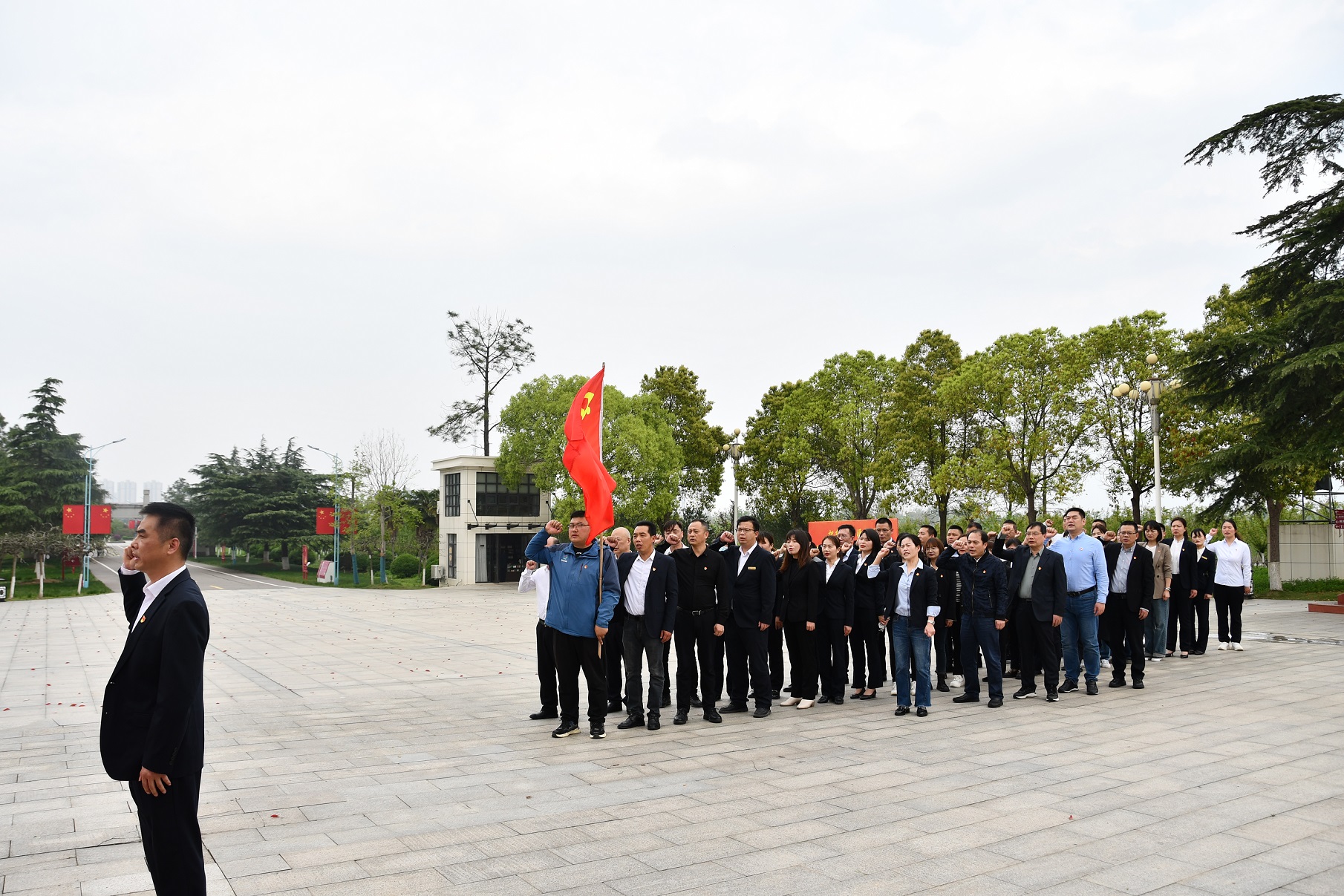 烈士纪念碑前的广场上,党委书记梁长林发表讲话,热情讴歌革命烈士的奉献精神和英勇事迹,并向纪念碑敬献了花篮。全体党员在纪念碑前默哀3分钟,重温入党誓词,铿锵有力的入党宣誓,让在场的每一位党员同志切实感受到了作为一个党员的自豪和责任,整个活动现场庄严而肃穆。
