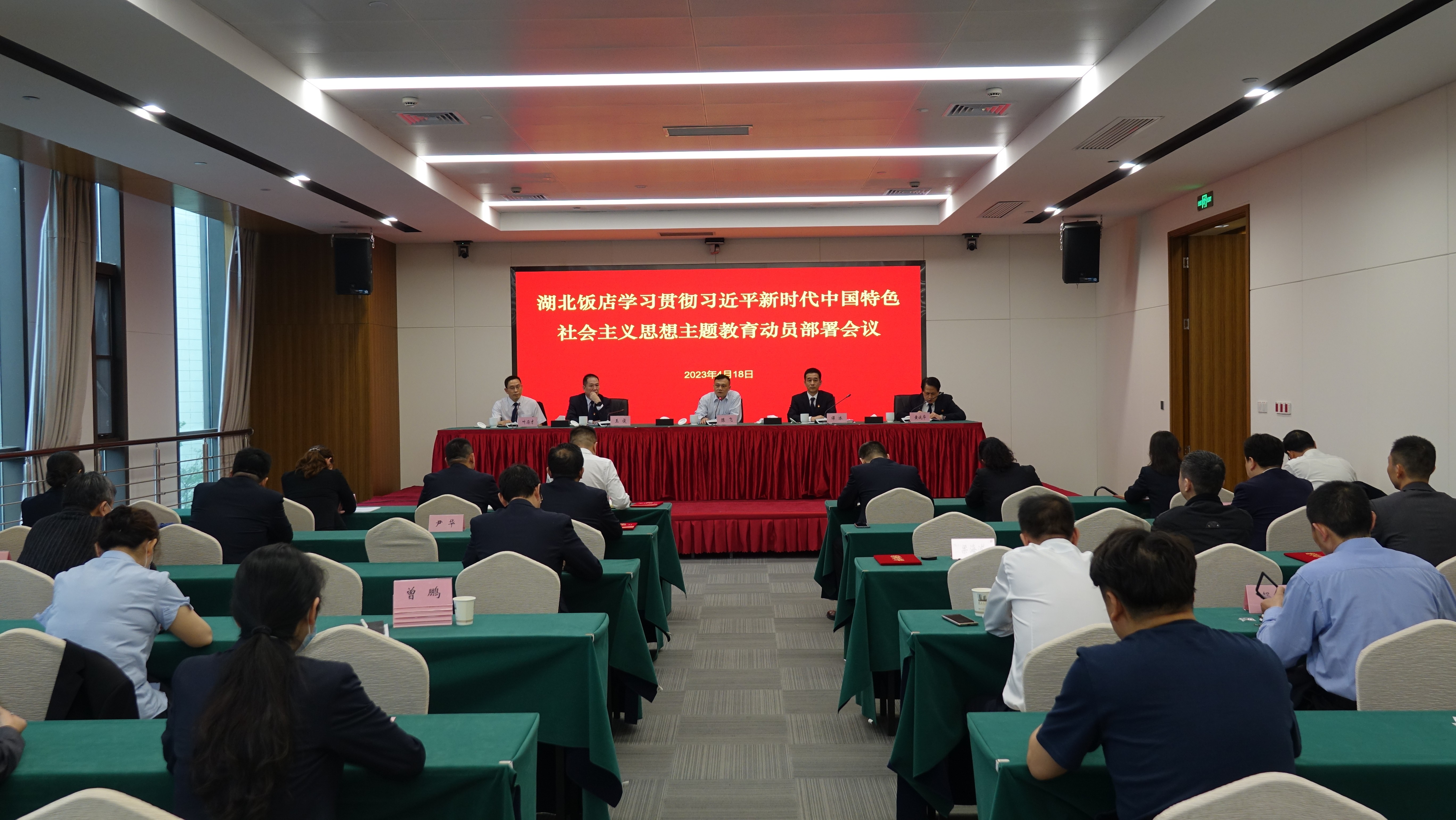 4月18日,湖北饭店召开学习贯彻习近平新时代中国特色社会主义思想主题教育动员部署会议。党委委员、纪委书记王俊主持会议,党委书记、董事长陈飞作动员讲话,饭店中层以上干部及全体党员参加会议。