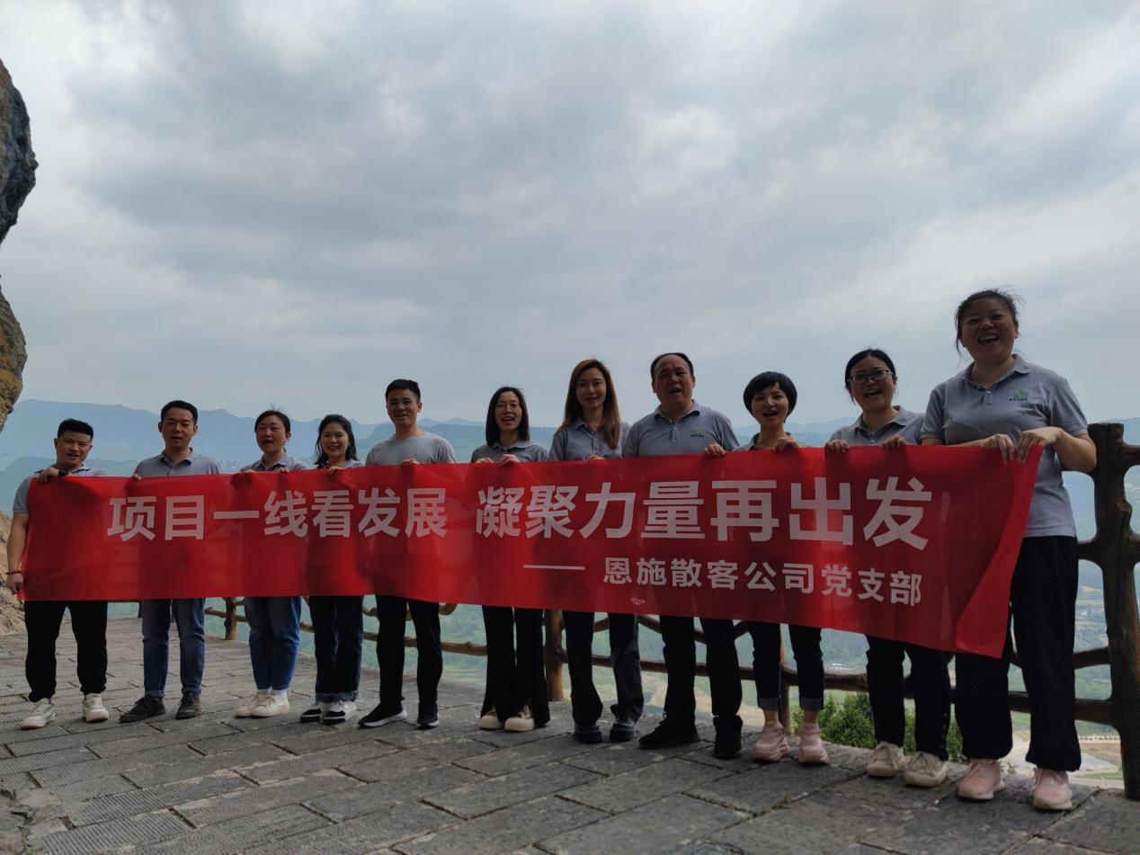 4月21日,恩旅集团散客公司党支部组织全体党员和员工代表前往恩施大清江红花峡峰林景区,开展主题为“项目一线看发展 凝聚力量再出发”的特色党日活动。