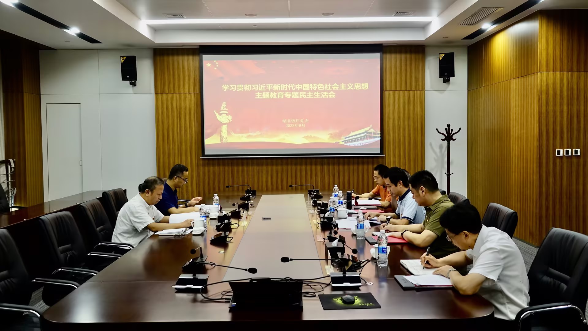 9月11日,按照集团党委统一部署,湖北饭店召开主题教育专题民主生活会。会议聚焦学习贯彻习近平新时代中国特色社会主义思想主题,紧扣“学思想、强党性、重实践、建新功”总要求,对照理论学习、政治素质等6个方面,特别是习近平总书记关于以学铸魂、以学增智、以学正风、以学促干的12条具体要求,全面查摆突出问题,深入进行检视剖析,严肃开展批评与自我批评。
