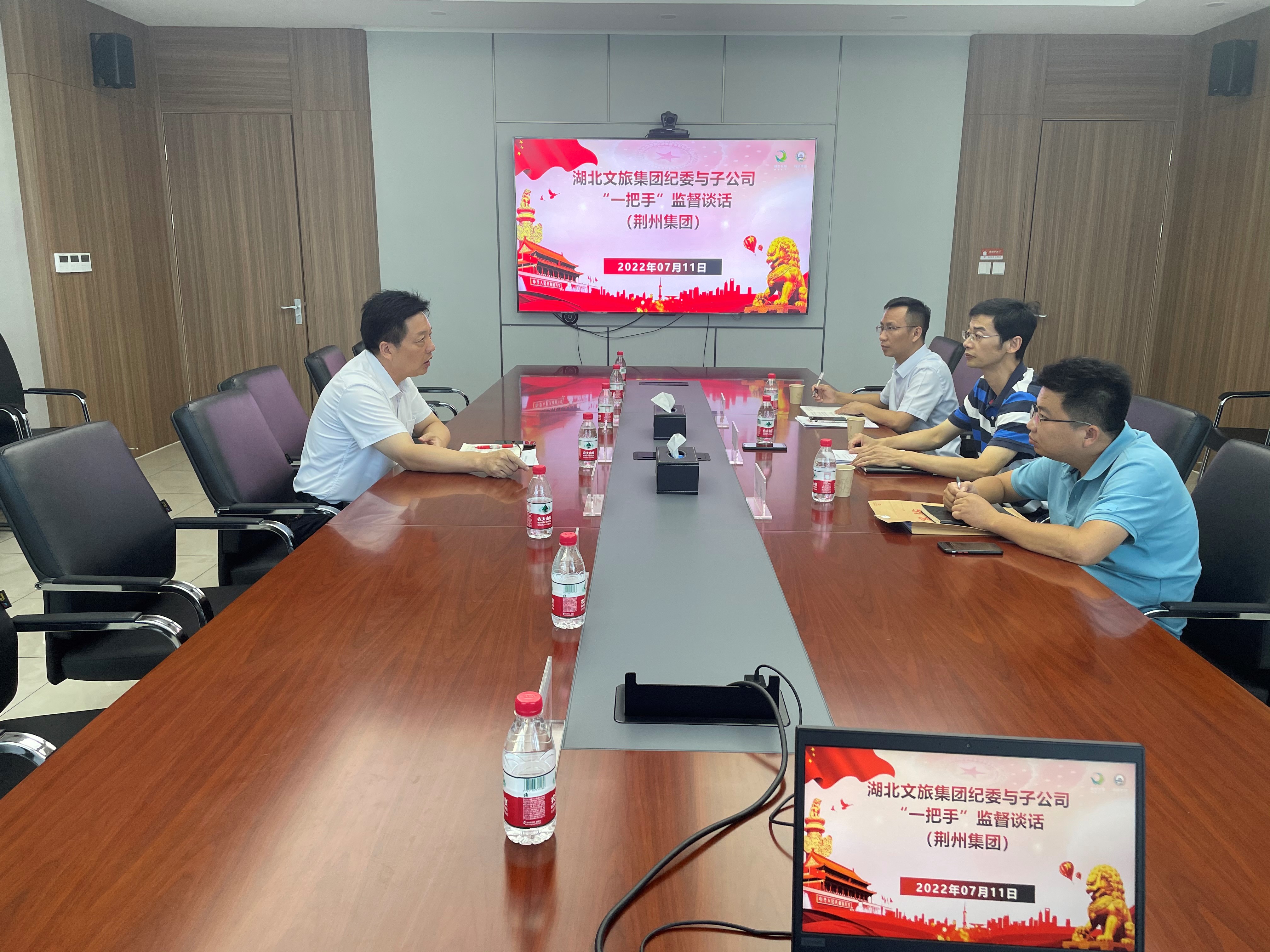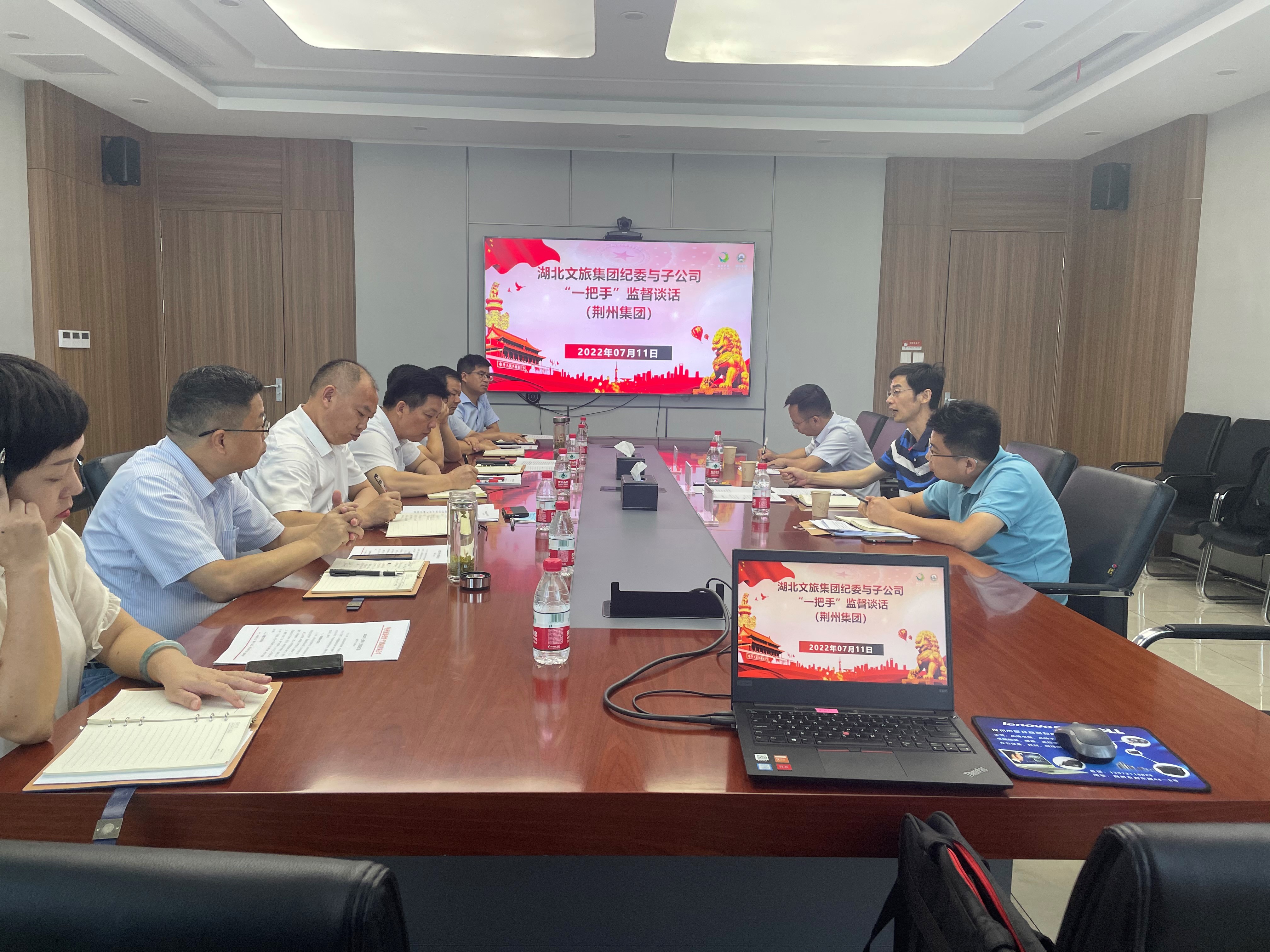 7月11日,免费黄色直播 党委委员、纪委书记、监察专员连正茂深入荆州集团调研,实地了解荆街招商运营、张居正故居改造、宾阳楼提档升级等项目进度,听取荆州集团党委、纪委上半年工作情况汇报,和荆州集团干部职工亲切交流,与党委书记、董事长李友平及班子成员进行子公司“一把手”和领导班子监督谈话。