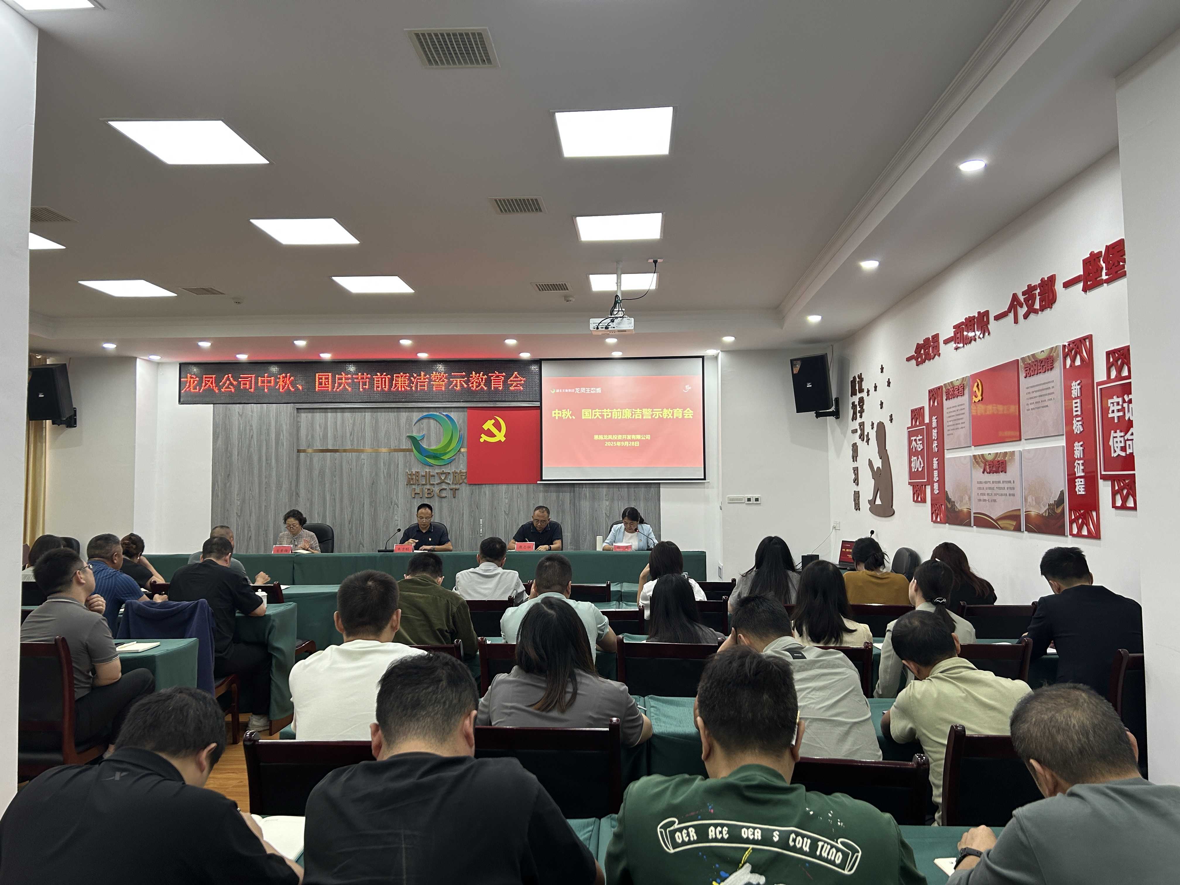 9月28日,龙凤公司组织召开节前廉洁警示教育会,进一步严明国庆、中秋期间的纪律要求,增强干部职工廉洁自律意识。公司领导班子、全体干部职工、合作单位代表参加会议。